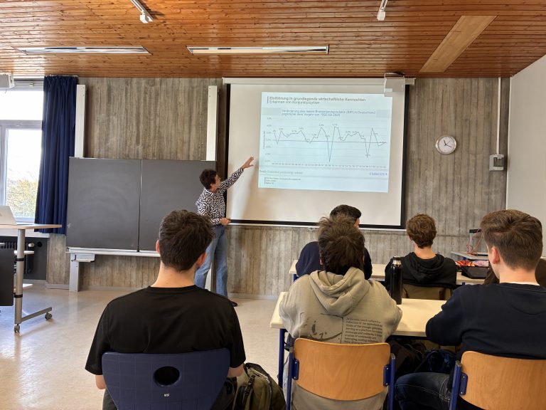 Frau Monika Maier von der Deutschen Bundesbank war zu Gast im Leistungsfach Wirtschaftder S2 und brachte einen äußerst detailreichen Vortrag zum Thema „Wirtschaftliche Lage und Konjunkturindikatoren in Deutschland“ mit, der für die Schülerinnen und Schüler kurz vordem schriftlichen Abitur eine wertvolle Wiederholung relevanter Abitur-Inhalte darstellte. Der 75-minütige Vortrag lieferte viele Zahlen, Statistiken, Informationen und Fakten, die bei dem Wirtschaftskurs (hoffentlich!) bereits Gelerntes reaktivierte und auffrischte. Das EKG und der S2-Wirtschaftskurs bedanken sich bei Frau Maier und der Bundesbank für den informativen Vortrag, die Erklärung makroökonomischer Zusammenhänge sowie die Beantwortung offener Fragen. Dankeschön!