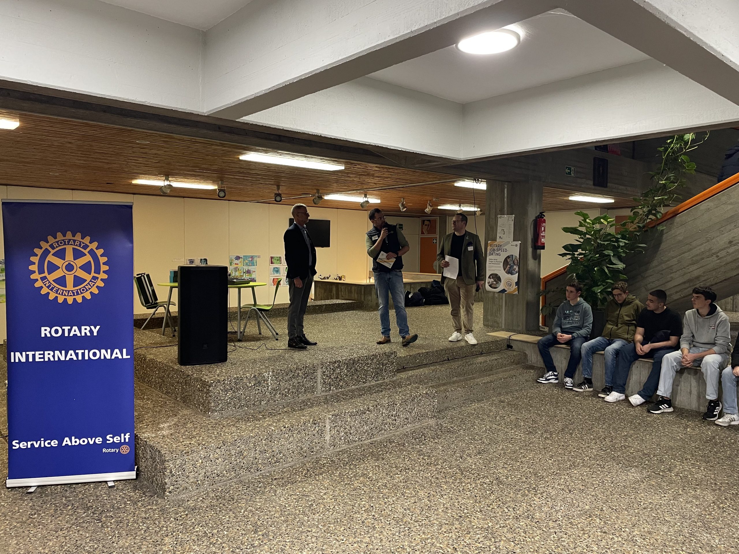 Circa 350 Schülerinnen und Schüler, die 2026 ihr Abitur an einem Gymnasium im Kreis Göppingen machen werden, waren am Erich Kästner Gymnasium in Eislingen zu Gast. Eingeladen hatten die beiden Rotary Clubs Göppingen und Stauferland zur „Rotary School of Life“, einer Informationsveranstaltung, wie der Weg der angehenden Abiturienten nach der Schulzeit weitergehen könnte. Hierzu gab es von 50 Referentinnen und Referenten praxisnahe Erfahrungen und Tipps, was in Studium und Berufsleben auf die jungen Leute zukommen wird. Dabei konnten die Schüler aus annähernd 30 verschiedenen Fachbereichen wählen von Sport, Management, Künstlicher Intelligenz, Architektur und Journalismus, über Maschinenbau, Polizei, Zahnmedizin, Telekommunikationstechnik, Bundeswehr oder Psychiatrie bis hin zu Pädagogik, Pharmazie, Wirtschaftswissenschaften oder Medizin. In zwei Durchgängen konnten die Jugendlichen die Bereiche ihrer Wahl erkunden und wertvolle Informationen für ihre Berufs- und Studienwahl sammeln. Für jene Schülerinnen und Schüler, die sich über ihren späteren Karriereweg noch nicht sicher sind, hatten die Organisatoren um Philipp Wälde (Rotary) ein Job-Speeddating mit zehn hochklassigen und erfahreneren Gesprächspartnern auf die Beine gestellt. Im direkten Austausch konnten die Schüler in kurzen Impulsgesprächen erste Vorstellungen entwickeln, wohin die Reise nach 2026 gehen könnte.