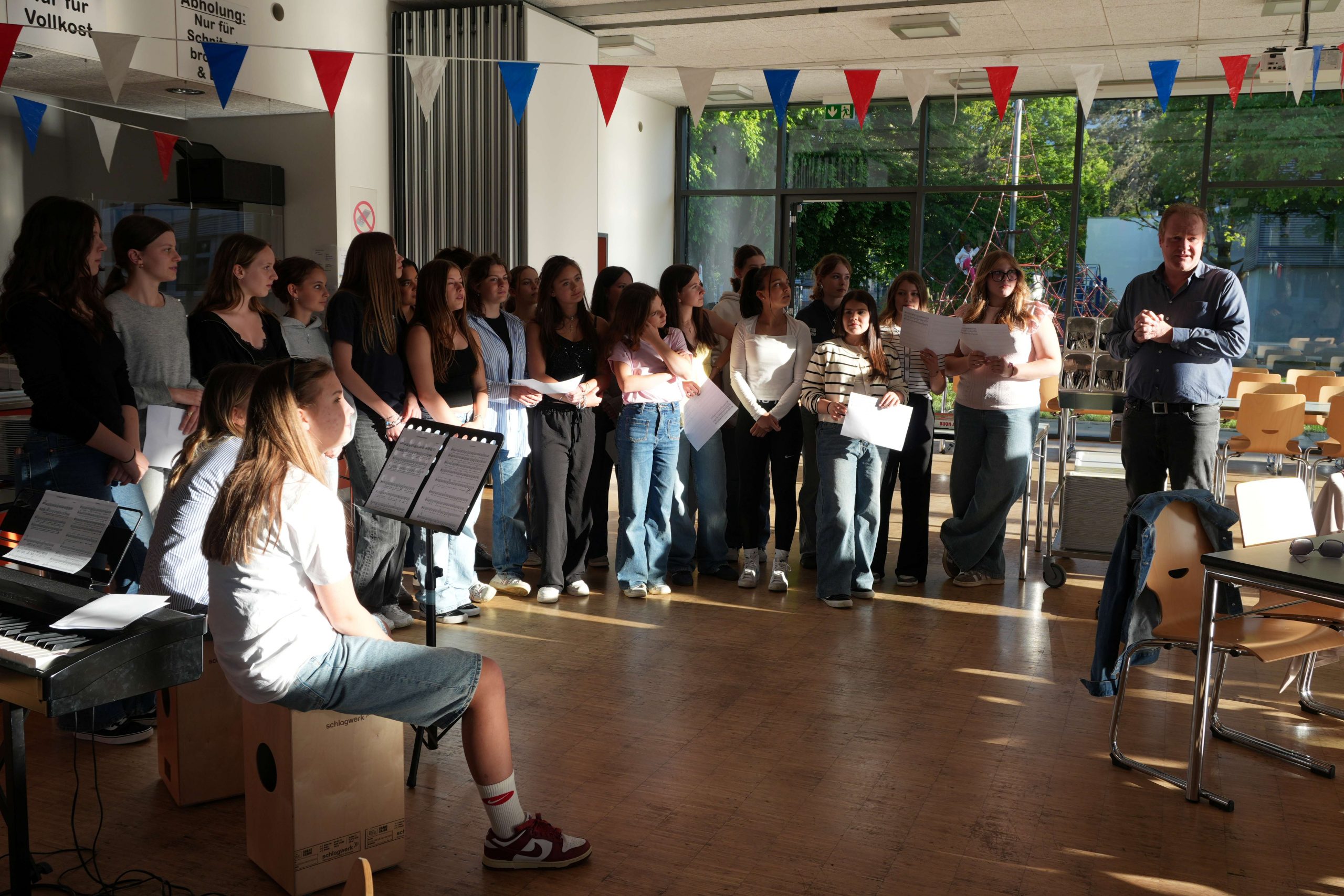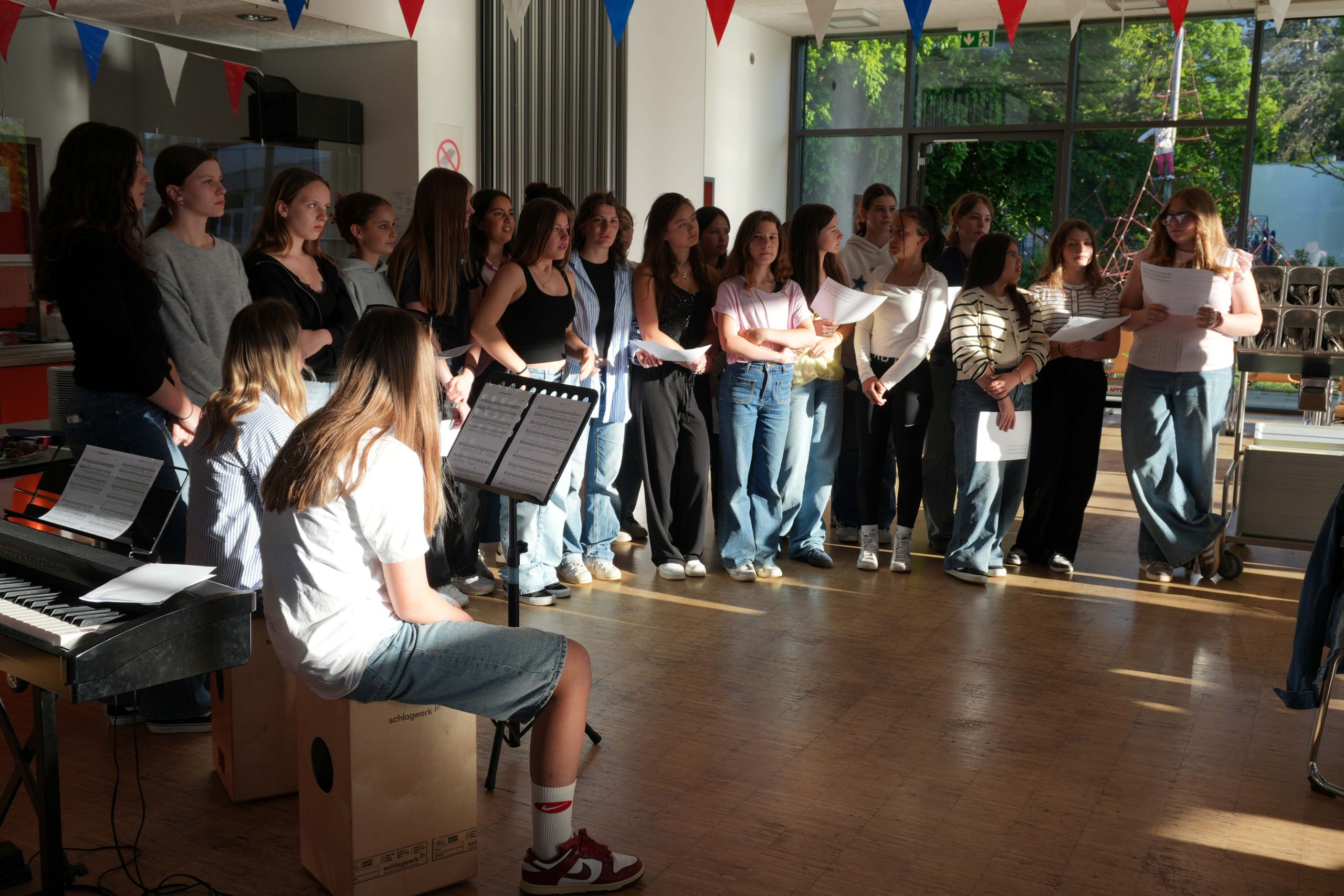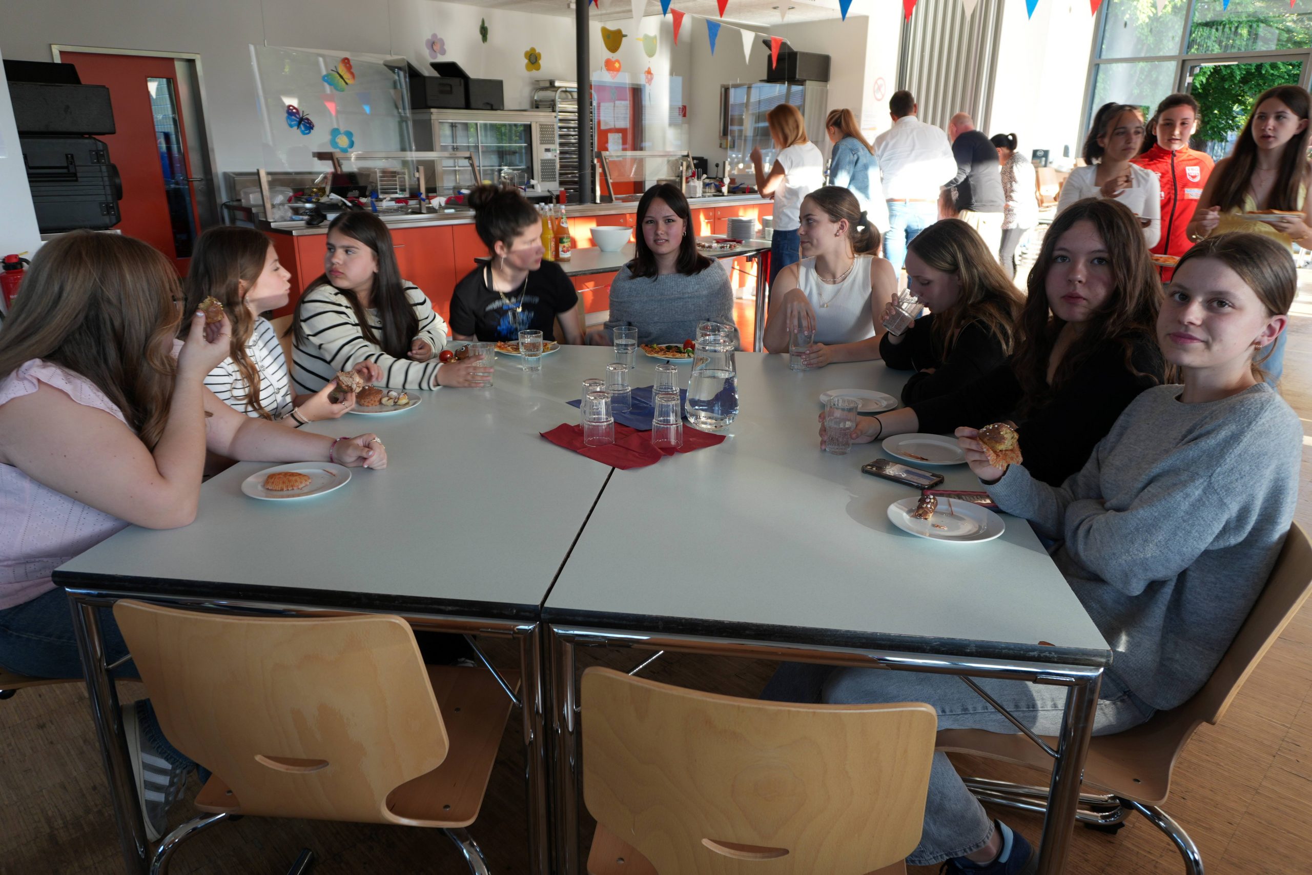 Zehn junge Französinnen waren für eine Woche mit ihrer Lehrerin Clara Neveu und ihrem Lehrer Clovis Chédot am Erich Kästner Gymnasium zu Besuch. Der Schüleraustausch der Jahrgangstufe 8 des EKG mit den Deutschklassen des Collège Saint Joseph in Oyonnax wurde im 32. Jahr fortgeführt. Gemeinsam mit den deutschen Austauschpartnerinnen und dem Französischkurs der Jahrgangsstufe hatten sie eine fröhliche Zeit in den deutschen Familien und an der deutschen Schule. Die Lehrer beider Seiten waren sich einig, dass die Stimmung noch nie so gut und die Freundschaften so intensiv waren wie in diesem Jahr. Ein buntes Programm führte die französischen Schülerinnen in das schwäbische Leben ein. So wurden zusammen Brezeln gebacken und ein Ausflug nach Stuttgart auf den Fernsehturm zeigte die Region von oben. Am intensivsten aber war das Kennenlernen bei der gemeinsam verbrachten Freizeit, beim Volleyballspiel auf dem Schulhof oder bei dem gemeinsamen Abschlussfest mit den deutschen Familien in der Mensa. Als da gemeinsam „Lieblingsmensch“ gesungen wurde, war die Rührung deutlich zu spüren. Beim Schüleraustausch geht es um so viel mehr als um das Lernen einer Fremdsprache: Da werden europäische Freundschaften geschlossen und da wird die europäische Idee gelebt. Deshalb geht der Austausch auch im nächsten Schuljahr in die nächste Runde!