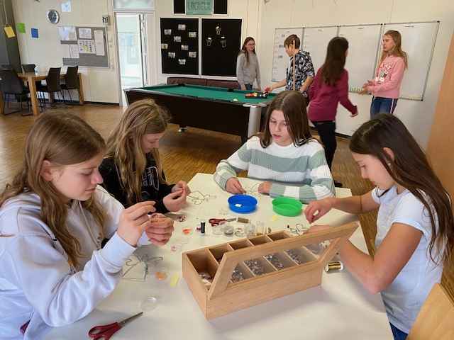 In der Ganztagsbetreuung wurde fleißig gebastelt und so entstanden bunte, kreative Drahtengel und fröhliche Weihnachtskarten.