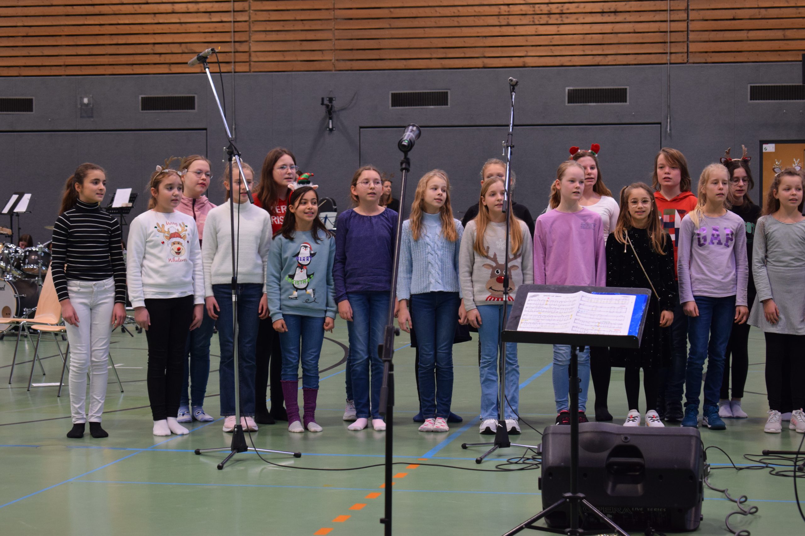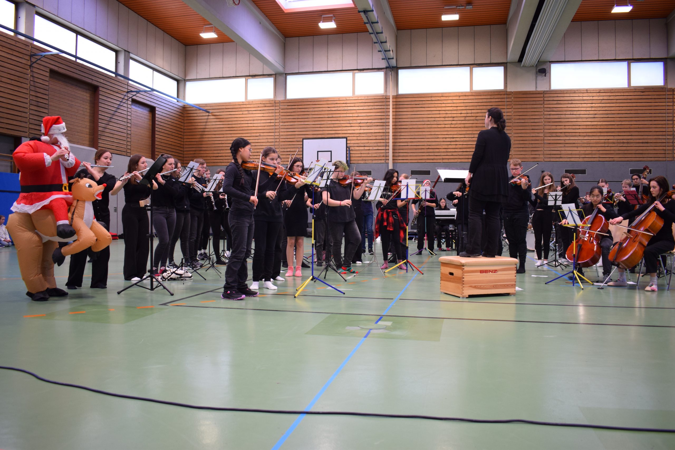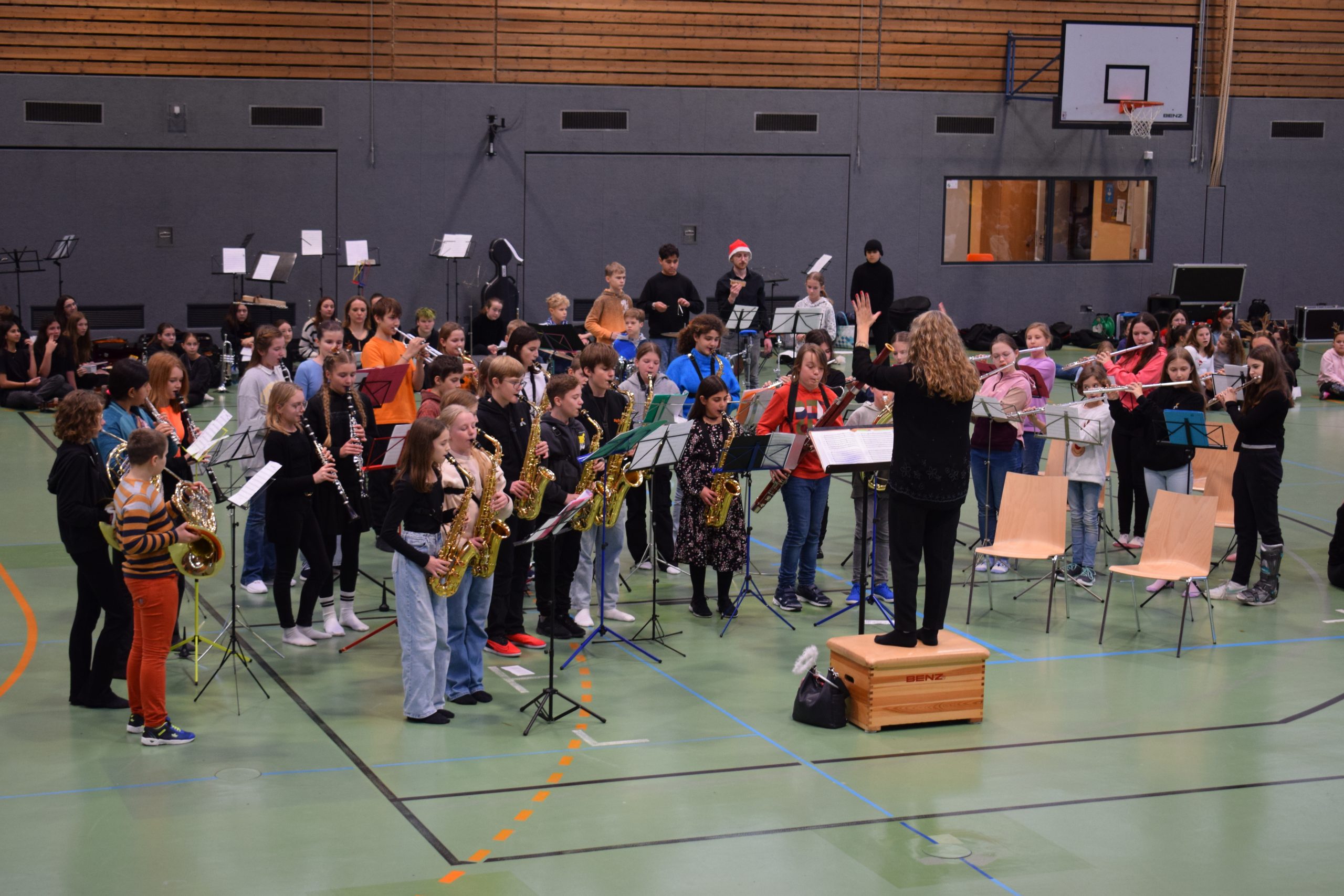 Alle Musikensembles und der Lehrerchor waren im Einsatz beim großen Weihnachtsmusizieren am letzten Schultag vor den Weihnachtsferien. Dazu hat sich die ganze Schule in der Öschhalle versammelt und genoss die fröhliche Stimmung.