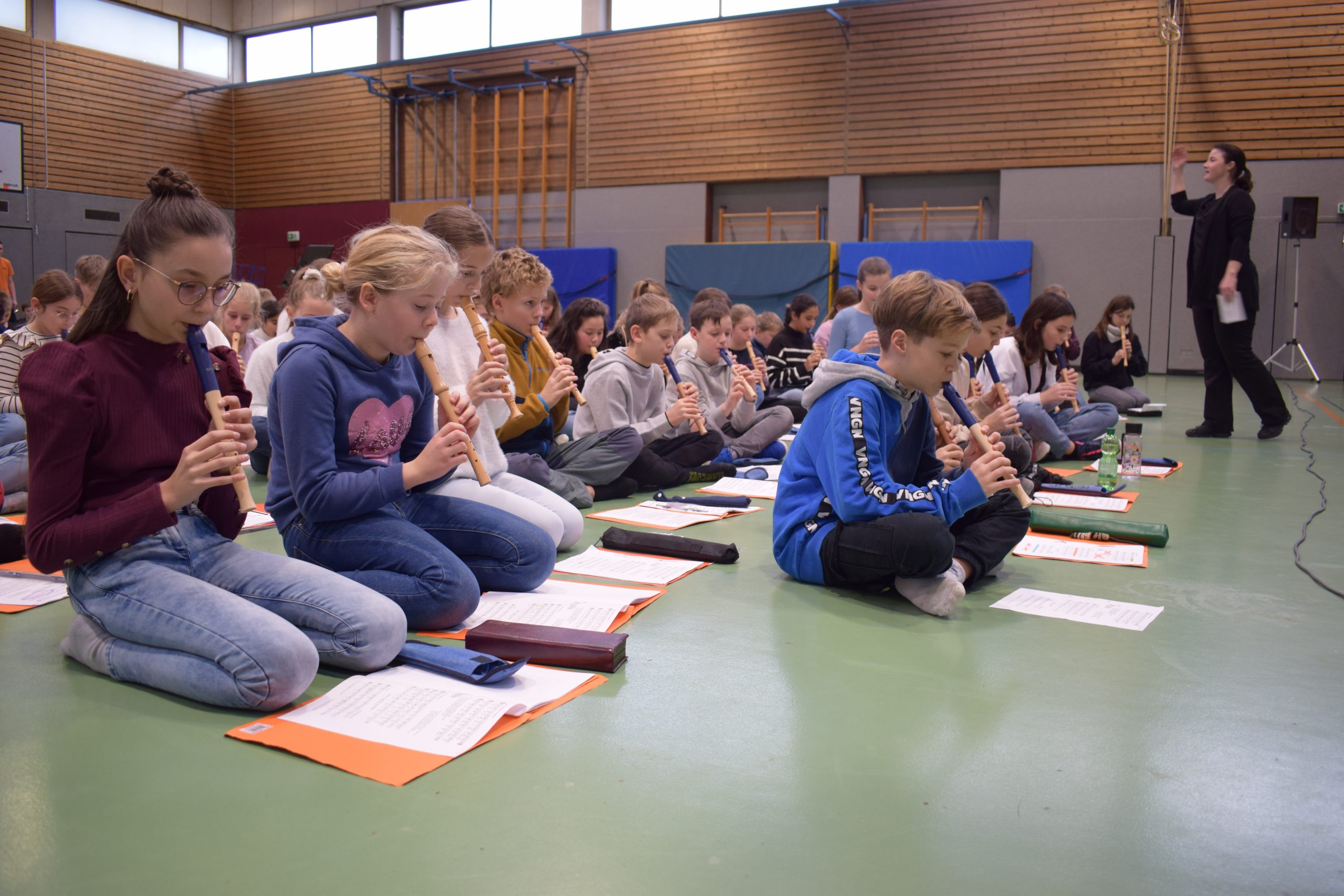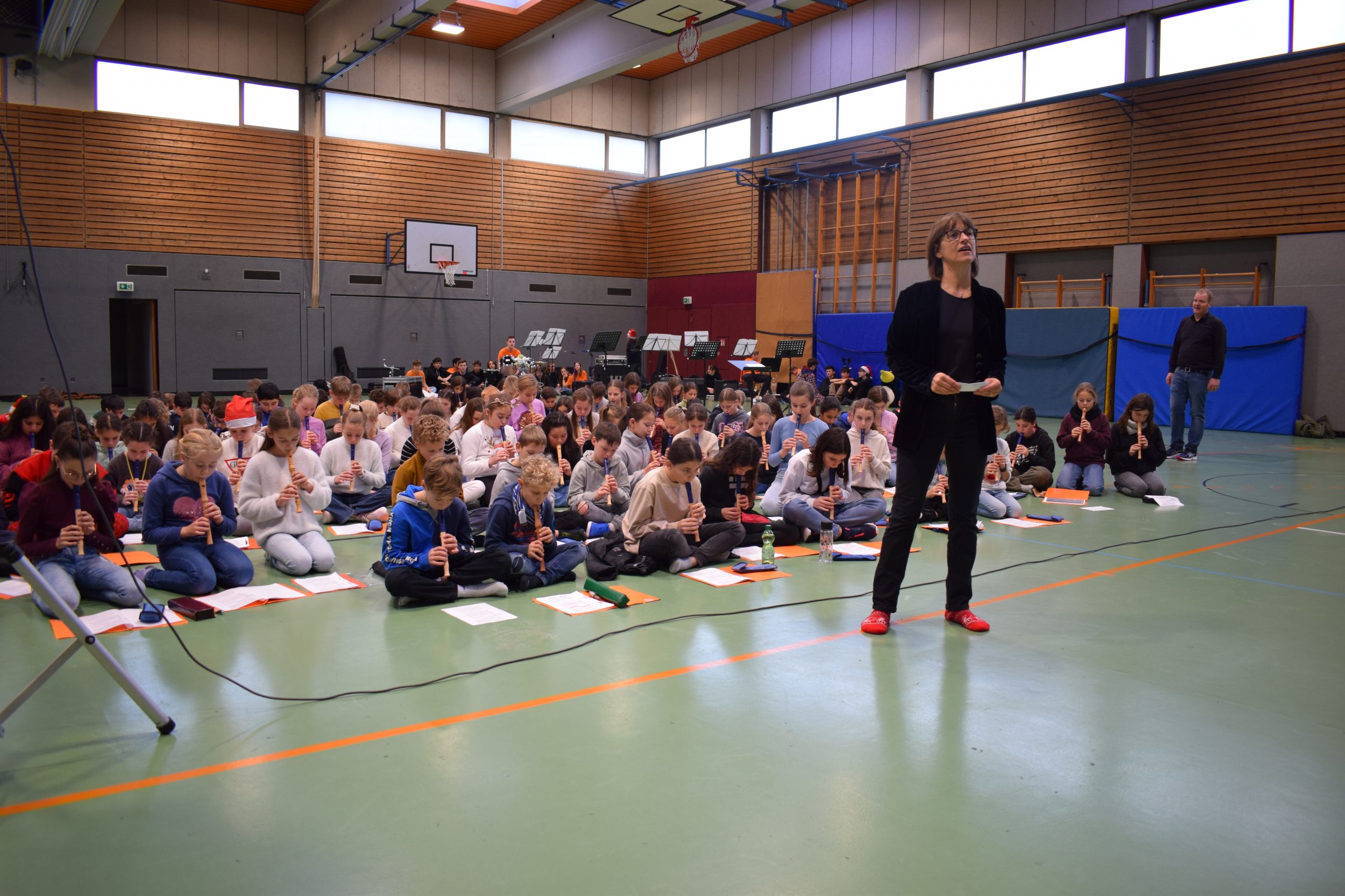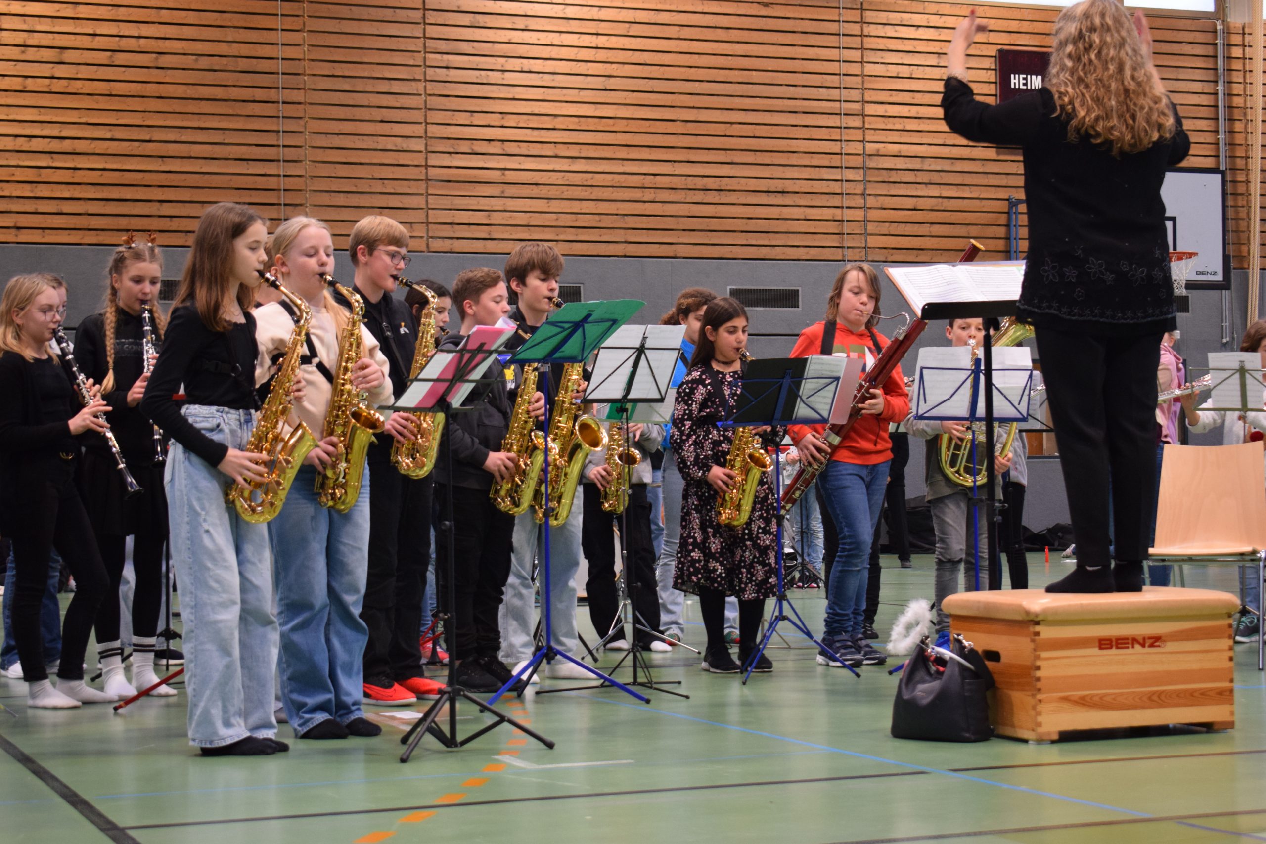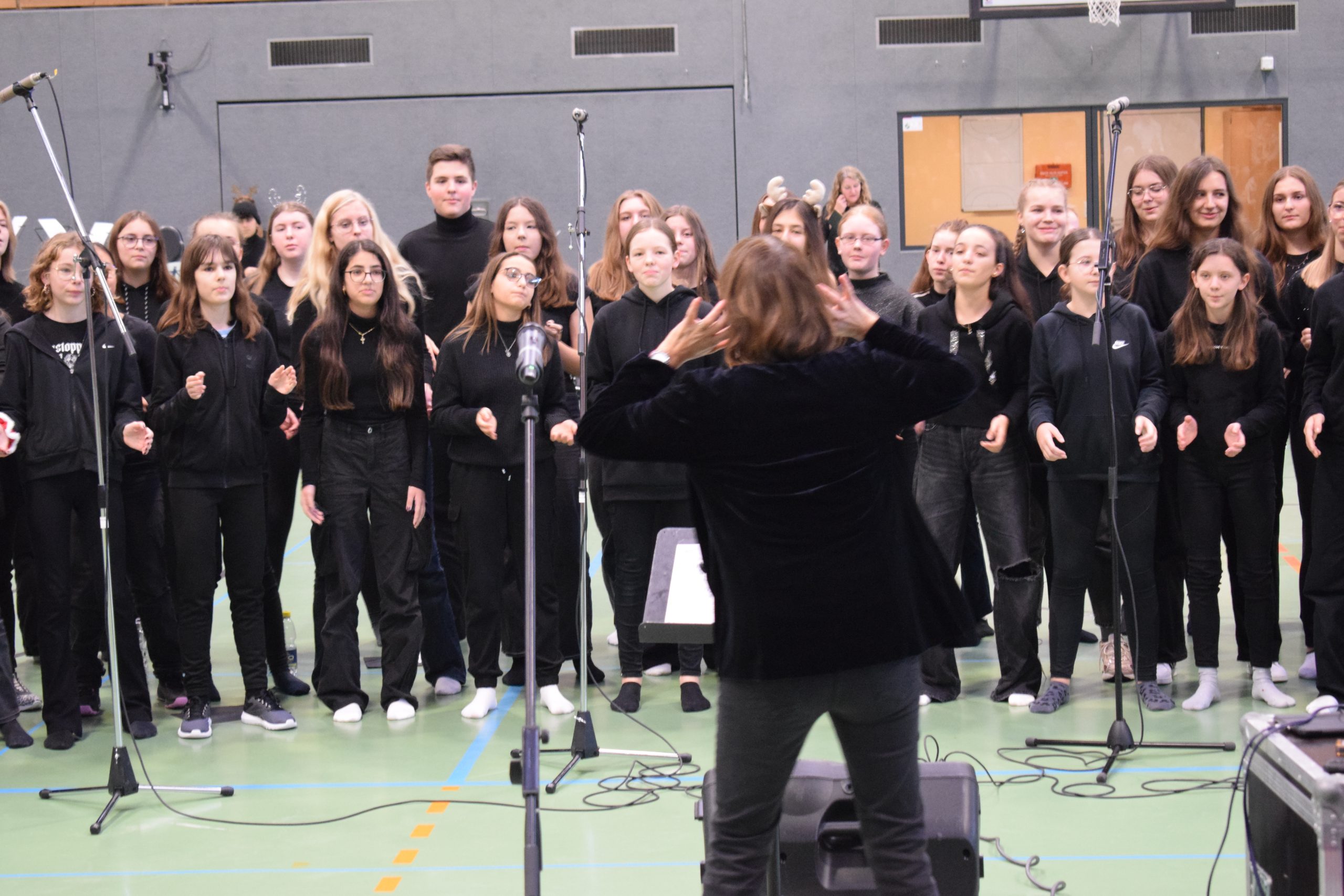 Alle Musikensembles und der Lehrerchor waren im Einsatz beim großen Weihnachtsmusizieren am letzten Schultag vor den Weihnachtsferien. Dazu hat sich die ganze Schule in der Öschhalle versammelt und genoss die fröhliche Stimmung.