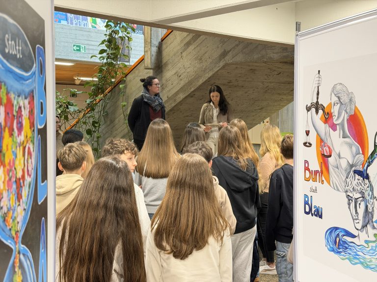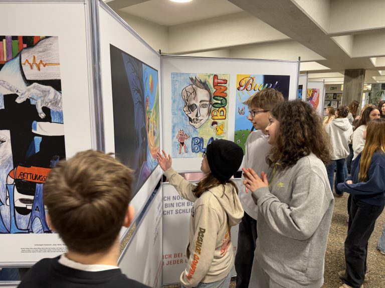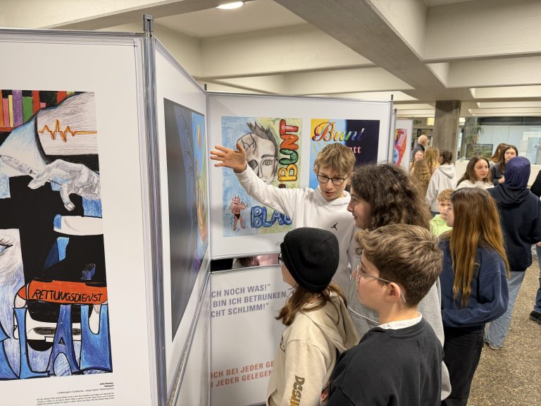 Göppingen / Eislingen 27.01.2026 Die Plakatkampagne „bunt statt blau“ geht auf Tour: Mit eindrucksvollen Bildern warnen Schülerinnen und Schüler aus ganz Deutschland Gleichaltrige vor Alkoholmissbrauch. Hier im Whiskeyglas ertrinkende Teenager, dort junge Menschen, die sich von den Ketten des Alkohols befreien – diese starken Motive sind jetzt in Eislingen zu sehen. Das Erich Kästner Gymnasium zeigt ab Montag, den 02. Februar die große Wanderausstellung der DAK-Gesundheit gegen das sogenannte Rauschtrinken bei Jugendlichen.
