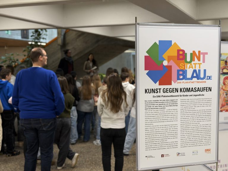 Der Plakatwettbewerb „bunt statt blau“ fand 2025 bereits zum 16. Mal statt. Unter dem Motto „Kunst gegen Komasaufen“ hatte die DAK-Gesundheit 2010 die Präventionskampagne gestartet. Seither haben sich mehr als 143.000 Jungen und Mädchen zwischen zwölf und 17 Jahren daran beteiligt und bunte Plakate gegen das Rauschtrinken gestaltet. Bundesschirmherr ist der Beauftragte der Bundesregierung für Sucht- und Drogenfragen Prof. Dr. Hendrik Streeck. Auf Landesebene unterstützt der ehemalige Nationaltorhüter und VfB-Legende Timo Hildebrand den Wettbewerb.