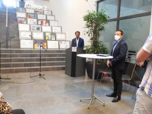 Er dankte den Schülerinnen und Schülern, Schulleiter Stephan Arnold und Kunstlehrer Stephan Renner, dass das Foyer nun wieder mit Kunst gefüllt ist. Auch den Schülerinnen und Schüler der Musikschule galt sein Dank, die die Vernissage mit Gesang, Klavier, Querflöte und Violine musikalisch begleiteten. Schulleiter Stephan Arnold sprach in seinem Grußwort die Leichtigkeit und Freude des vorgetragenen Musikstückes ‚Tanz der Zuckerfee‘ aus Tchaikovskys ‚Nussknacker‘ an, denn diese sei auch in der ausgestellten Kunst wiederzufinden. Er lud die Gäste ein, die kunstvollen Arbeiten im Anschluss näher zu betrachten und darüber ins Gespräch zu kommen.