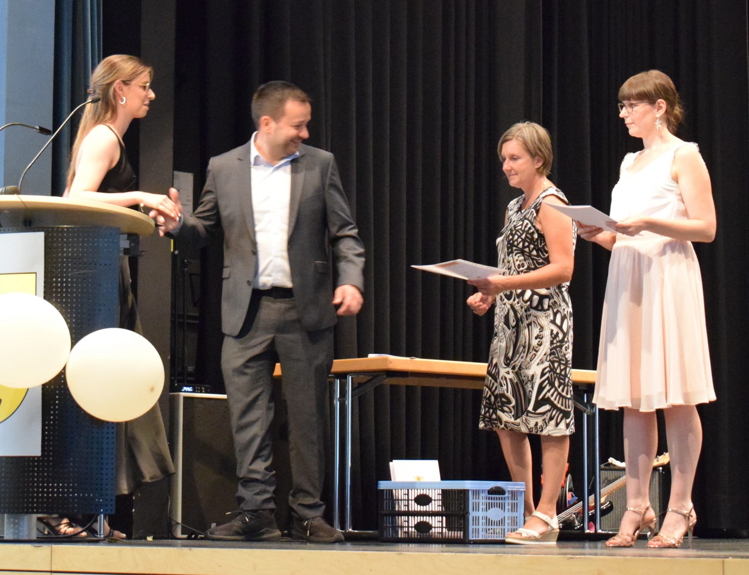 Für sein Engagement im Team der Schülersprecher wurde Jonas Thater mit einem Preis ausgezeichnet. Jan Zurmühl, Kevin Schmidhäusler, Mailin Schuck erhielten eine Belobigung für ihr Engagement in der SMV.