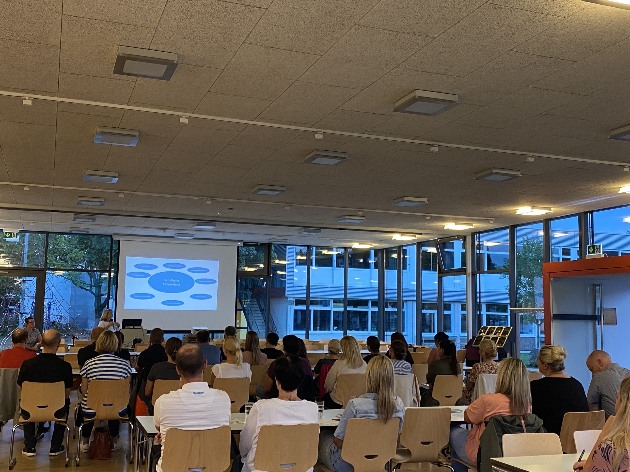 Mit großem Interesse lauschten gleich in der zweiten Schulwoche, am 18. September 2023, 52 Eltern der neuen Fünftklässler dem Vortrag „Die schulische Entwicklung Ihres Kindes – Methoden des Lernens“ unserer ehemaligen Beratungslehrerin Frau Dorsch und unserer Schulsozialarbeiterin Frau Hinzel-Hees.