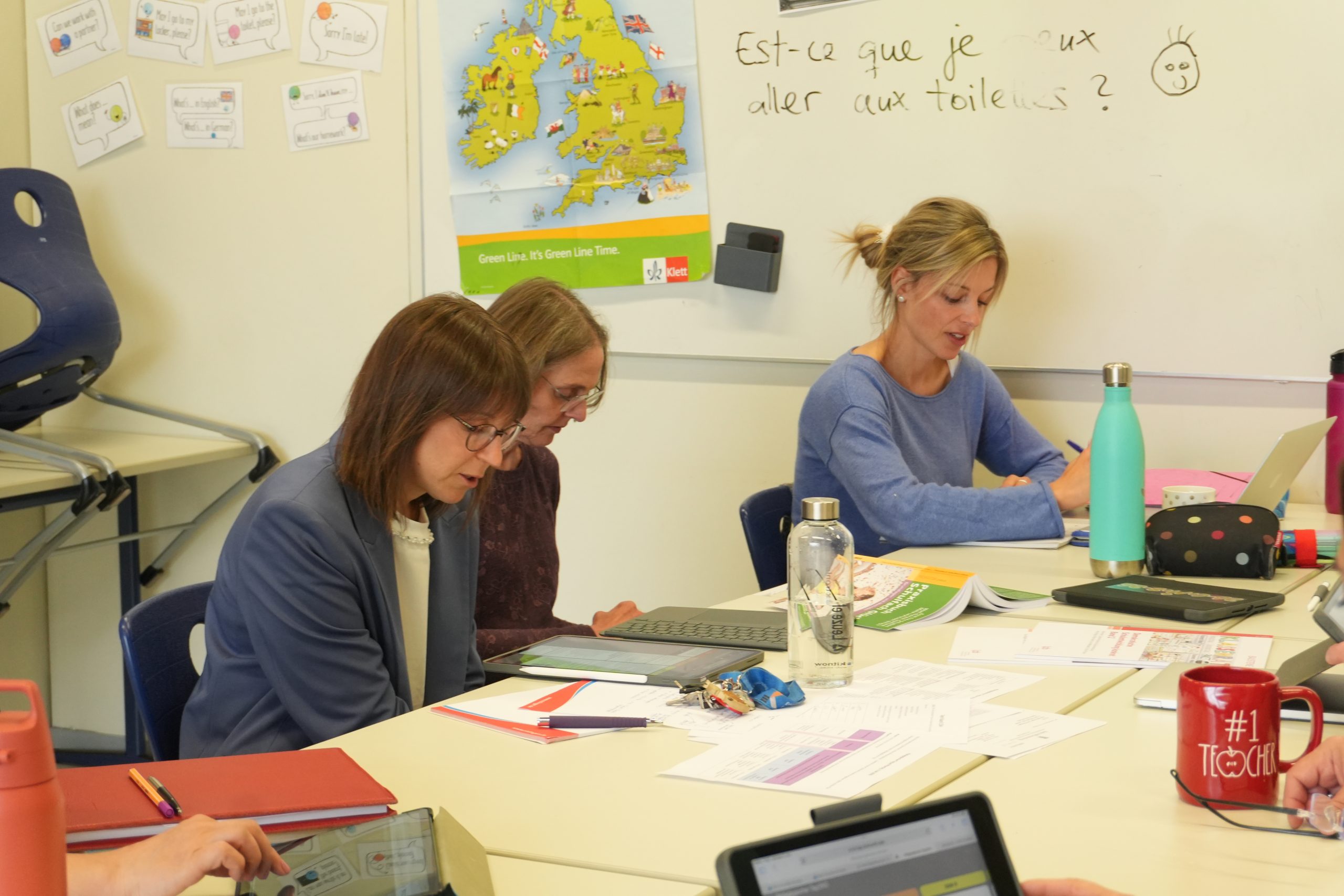 In einem sehr produktiven Miteinander entwickelte das Kollegium am pädagogischen Tag Konzepte für den Schulalltag im neuen G9. Verschiedene Workshops erneuerten den Methodentag und entwickelten die Klasslehrerstunden in den Klassen 5 und 6 weiter. Auch Strategien für das künftige “Mentoring” in Klasse 7 und 10 wurden erkundet. In den Klassenstufen 8, 9 und 10 wird es künftig je eine Wochenstunde für soziale Aktivitäten, für die psychische Gesundheit und den Austausch in der Klasse geben. Auch dafür wurden interessante Ideen und Konzepte vorbereitet. Insgesamt war der Tag geprägt von vielen kollegialen Gesprächen, gegenseitigen Anregungen und einem wertvollen Austausch. Den Abschluss bildete am Nachmittag ein Vortrag von der Fachberaterin Claudia Thebrath über QUBE-F, ein System von Tiefenstrukturen und sinnvolles Feedback im Unterricht, das dem Kollegium Impulse für die Reflexion des eigenen Unterrichts gab.