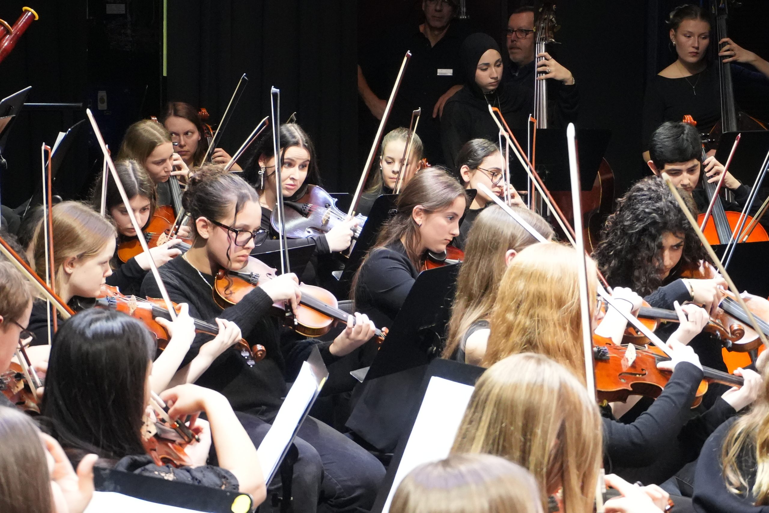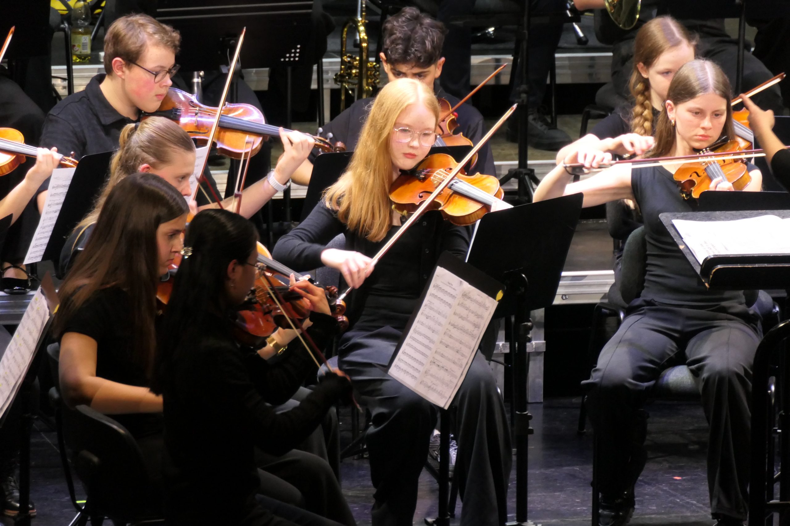 Einen Sonnenaufgang erschuf das Oberstufenorchester mit seinem herzerwärmenden Klang bei dem Werk „Nostalgia“. Dies zeigte, wie sehr das Ensemble, dirigiert von Stephanie Kapfer, zu einer Einheit verschmilzt und wie stark das aufeinander Hören und miteinander Spielen ausgeprägt ist. Mehr als 70 junge Musiker entlockten ihren Instrumenten die außerirdische Atmosphäre beim Besuch von „E.T.“ genauso wie einen temperamentvollen Himmelssturm.