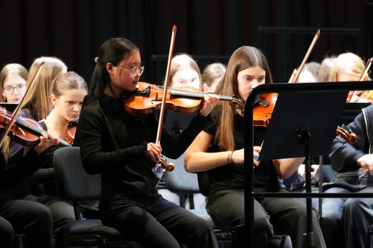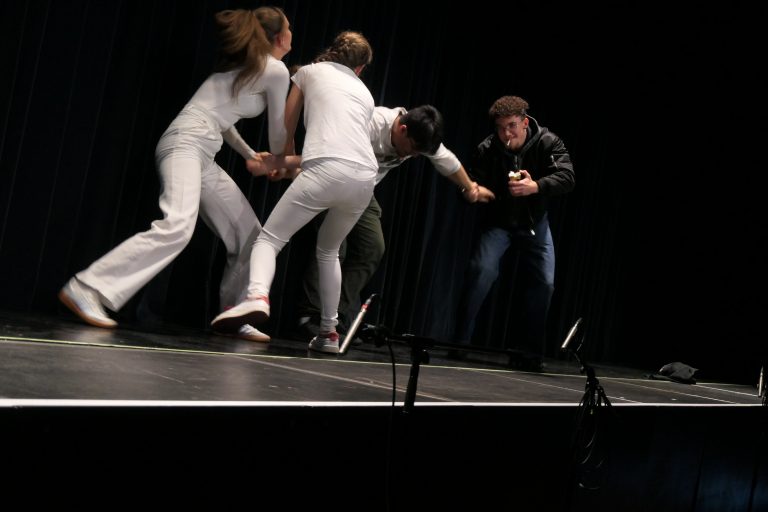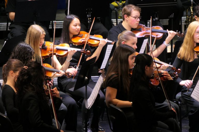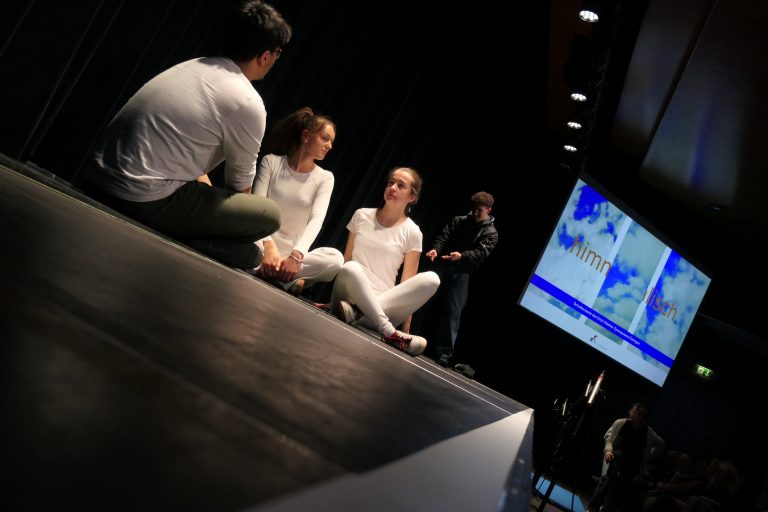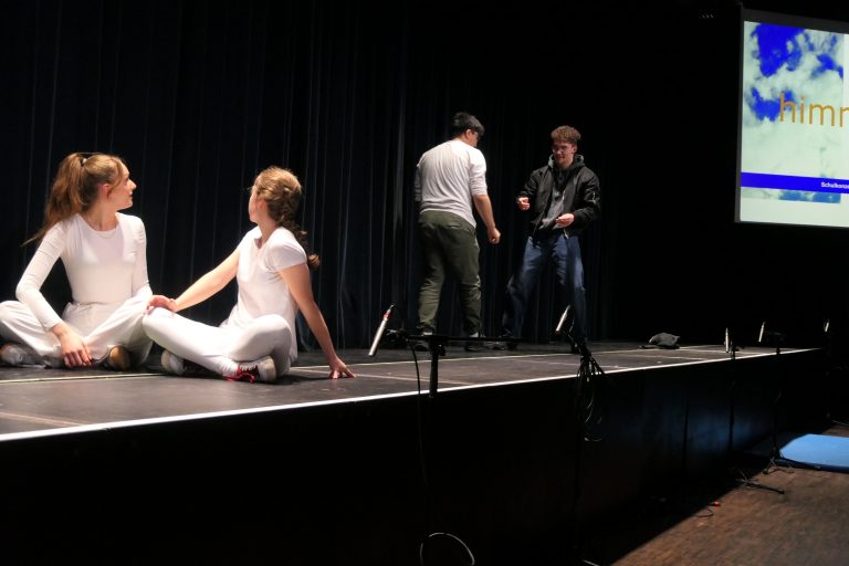 Hin und hergerissen zwischen Himmel und Hölle, zwischen Alltag und Versuchung zog der Theaterkurs die Zuschauer am ersten Abend in den Bann. Beim zweiten Konzert bot der Kurs eine satirische Quizshow, die das Auf und Ab in der Gesellschaft ironisch durchleuchtete. Nach den Sternen griff das Unterstufenorchester mit Uta Oellig bei seiner lebensfrohen musikalischen Reise durch die Nacht. Mit einem fein abgestimmten Bolero Nocturno sorgten die jungen Instrumentalisten für mitreißende Rhythmen.