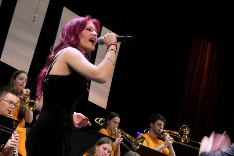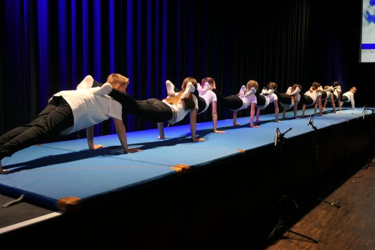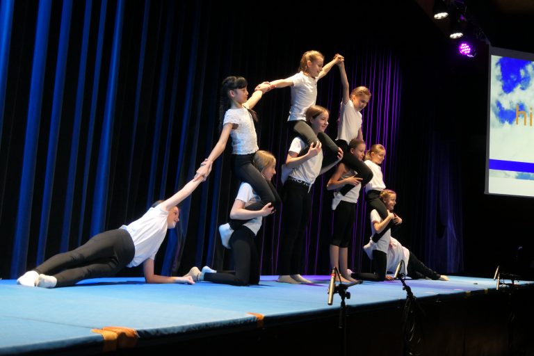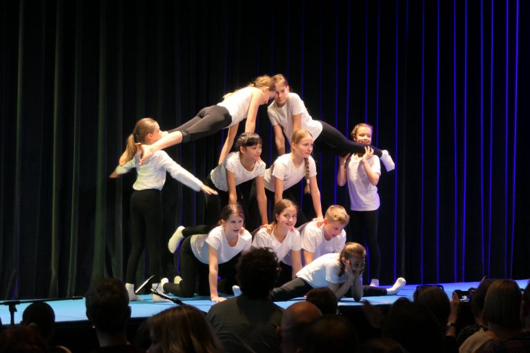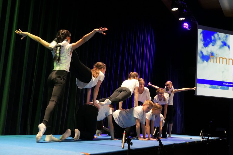 Die Zirkus-AG unter Leitung von Jochen Bühner wirbelte zwischen den Programmpunkten gekonnt über die Bühne und baute mit ihren Pyramiden menschliche Wolkenkratzer. Den Sonnenuntergang in all seiner Farbigkeit malte die Bigband unter Leitung von Martin Gradner mit musikalischen Klängen in den Abend. Unterschiedlichste Stilrichtungen zauberten mitreißende nächtliche Lebensfreude in den Saal. Mit „Blackbird“ wurde ein eher unbekannter Song der Beatles in Szene gesetzt. Am Ende begeisterte Marlene Wisura mit ihrer einzigartigen, ausdrucksstarken Stimme beim Gesangssolo.