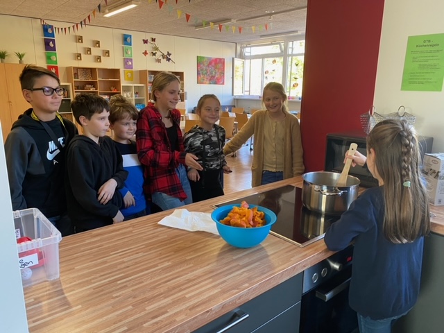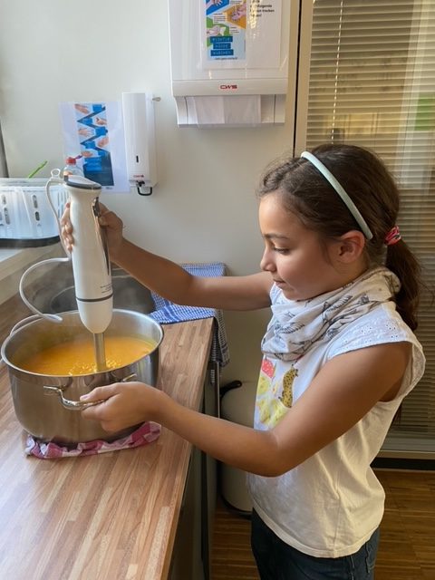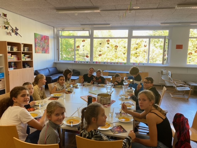 Der Kürbis stand im Mittelpunkt des Herbstprojektes in der Ganztagsbetreuung. Da wurde geschnippelt und gekocht, gerührt und pürriert – und am Ende genossen alle die selbstgekochte Kürbissuppe. Natürlich durfte die selbstgebastelte Deko am Fenster nicht fehlen.