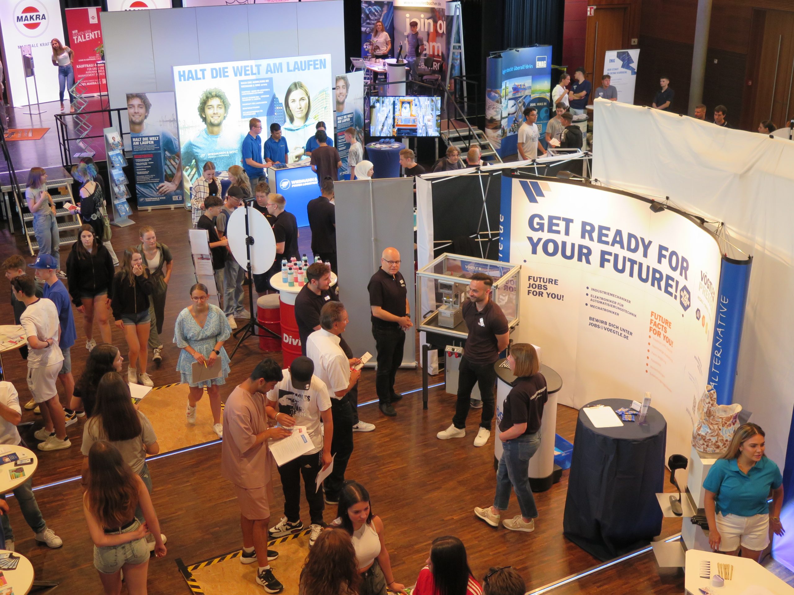 In seinen Eröffnungsworten ging Oberbürgermeister Klaus Heininger auf die Herausforderungen ein, vor denen die Unternehmen bei der Gewinnung von Mitarbeitern stehen. Junge Kollegen werden überall händeringend gesucht und den zukünftigen Mitarbeitern wird folglich der rote Teppich ausgerollt, um sie von einer Ausbildung oder einem Dualen Studium im Unternehmen überzeugen zu können. Eine Möglichkeit, um Unternehmen und zukünftige Auszubildende zusammenzubringen, sei solch eine Ausbildungsmesse, die den Schülerinnen und Schülern die Möglichkeit eröffne, potenzielle Arbeitgeber und Berufsfelder kennenzulernen und erste persönliche Kontakte zu knüpfen.