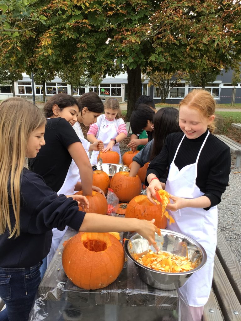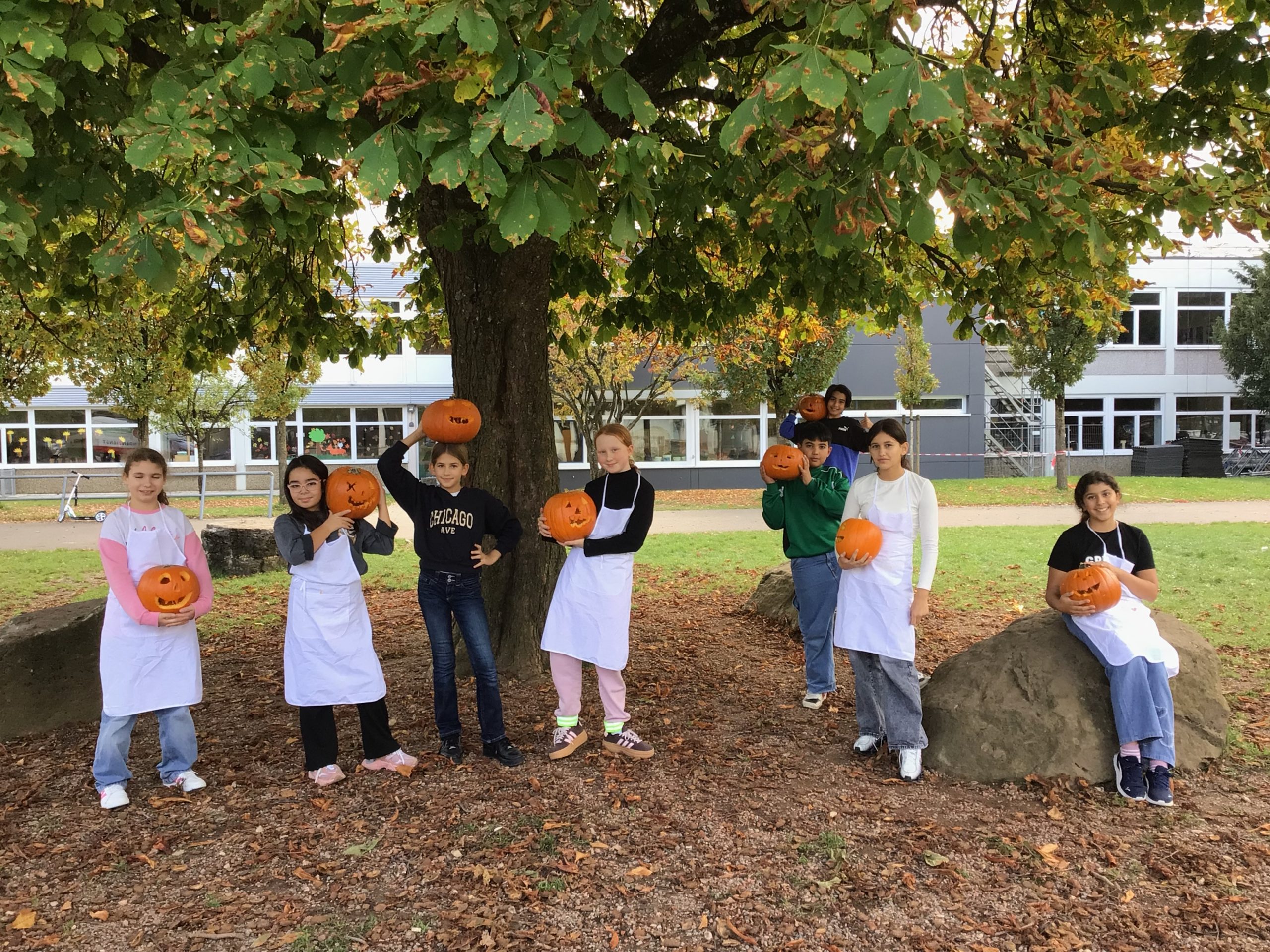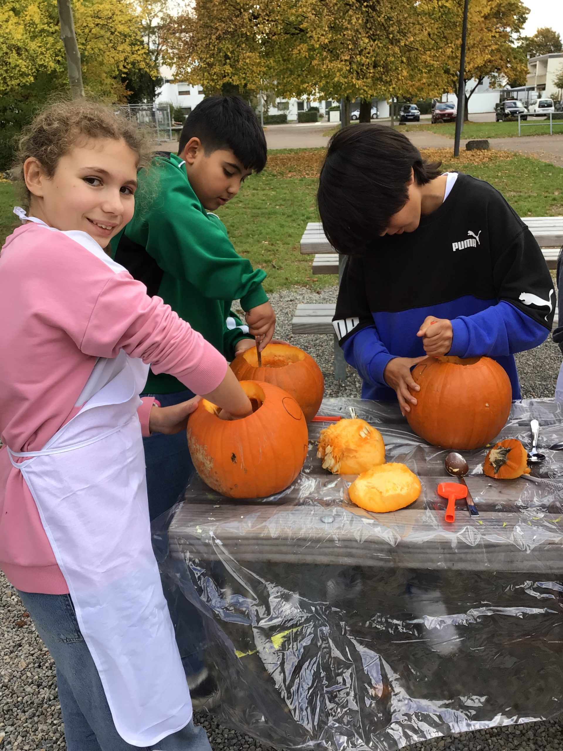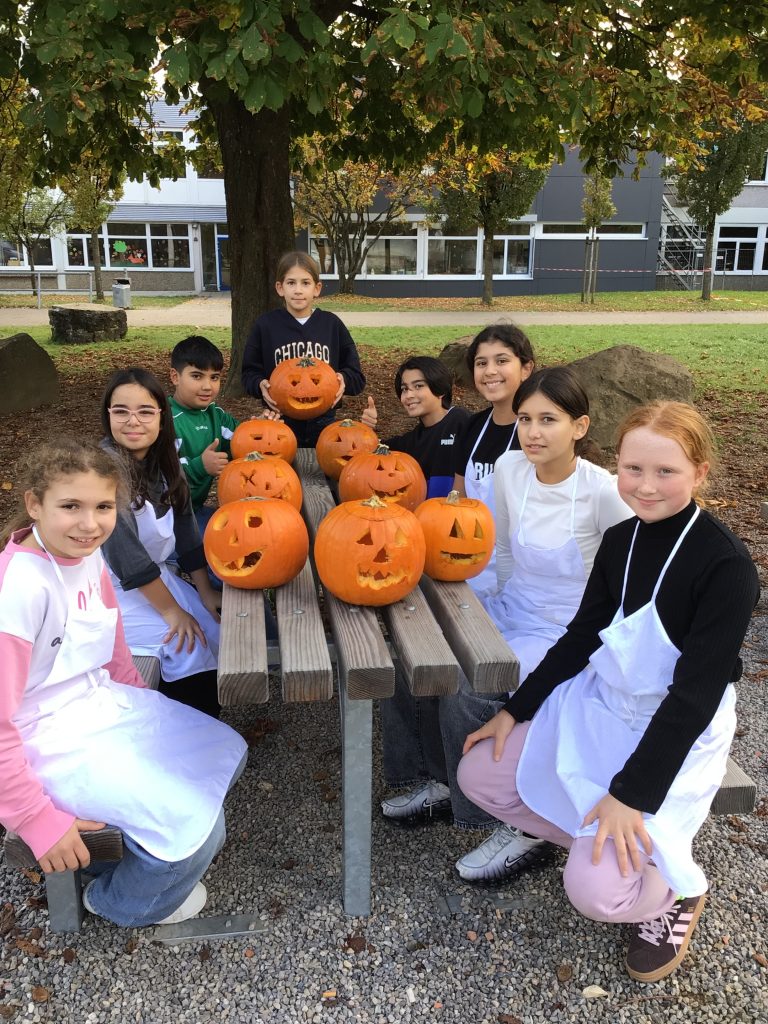 Kurz vor den Herbstferien wurde auf dem Schulhof fleißig geschnitzt. Mit viele Freude und Kreativität entstanden zahlreiche gruselige und lustige Kürbisköpfe. Ein schöne Einstimmung auf die Herbstferien.