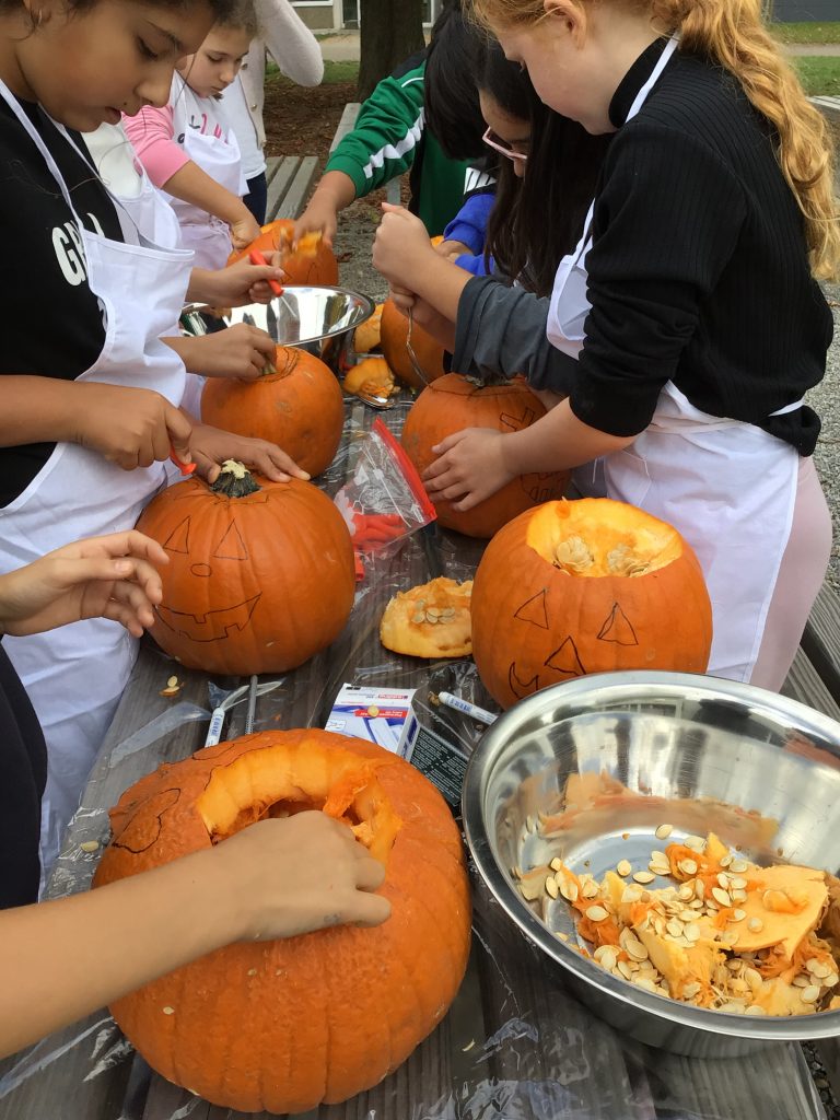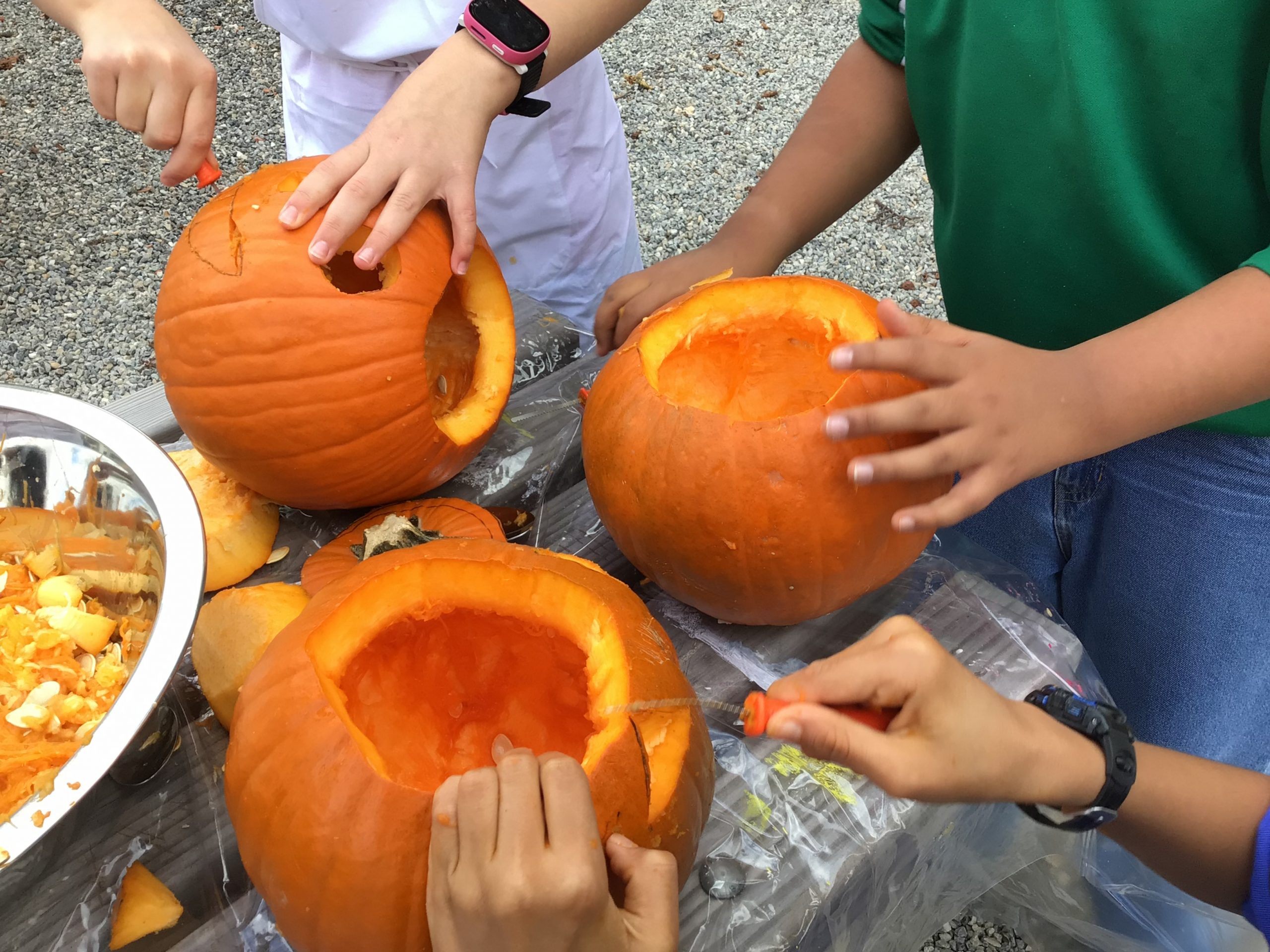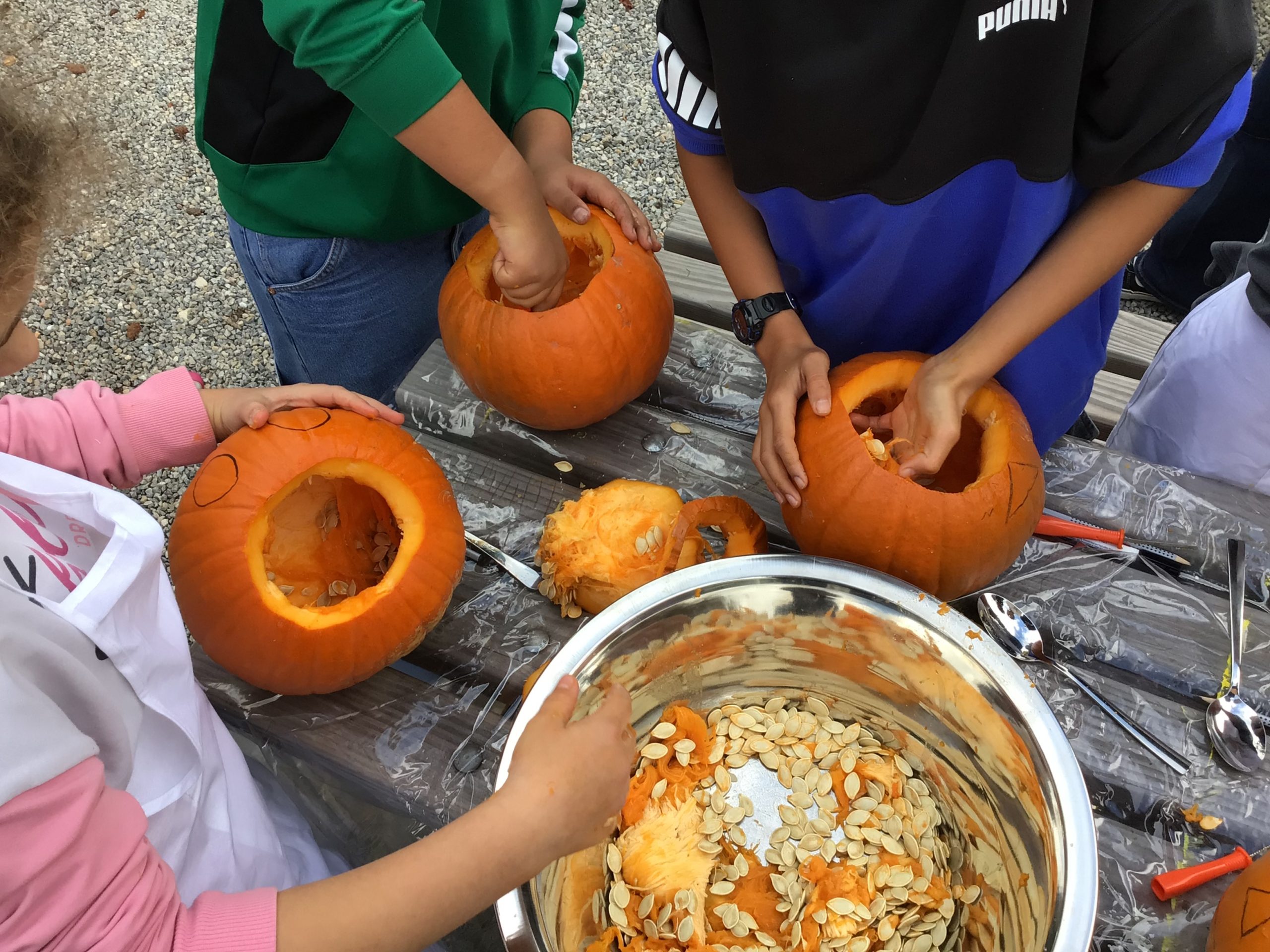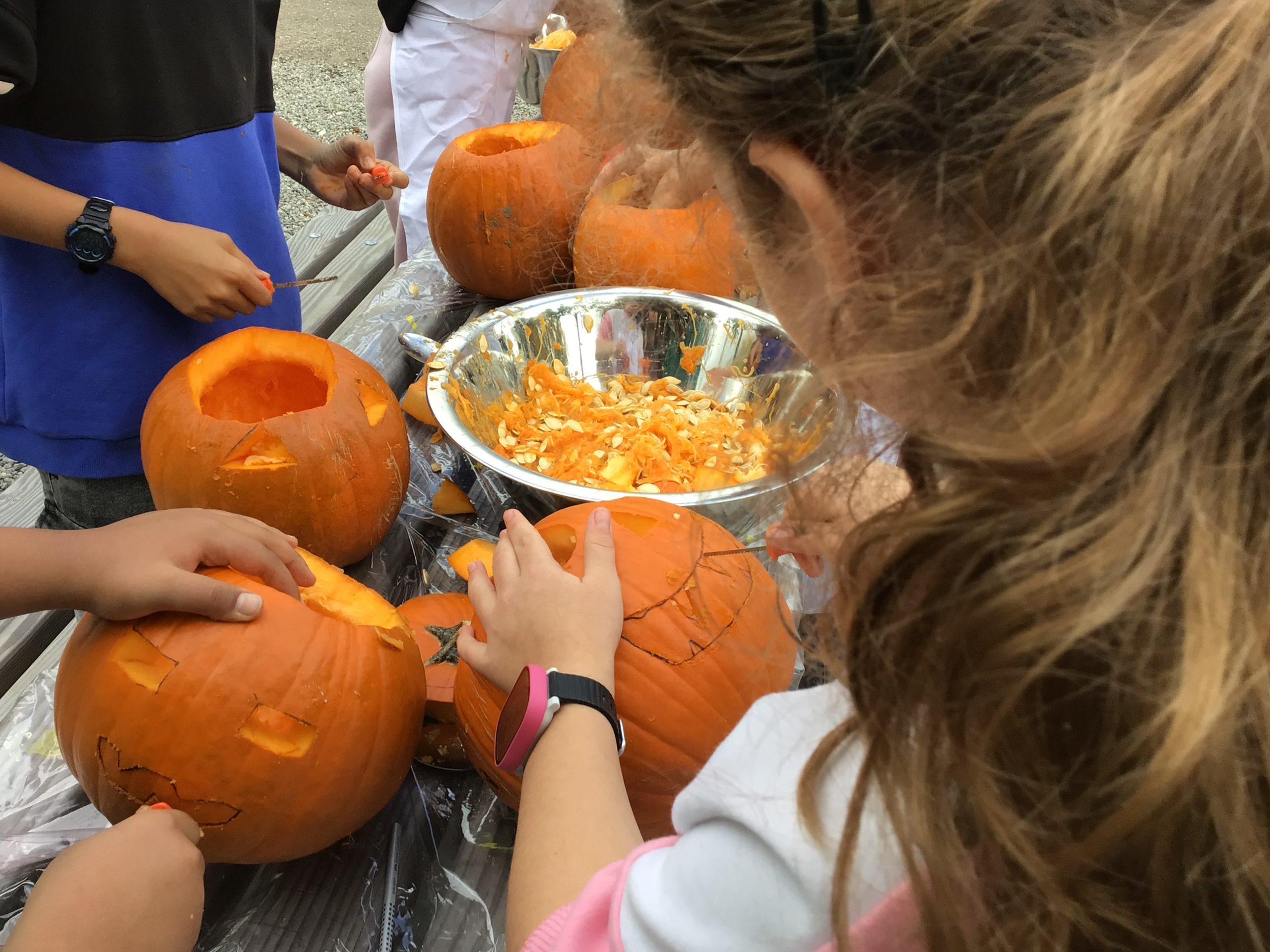 Kurz vor den Herbstferien wurde auf dem Schulhof fleißig geschnitzt. Mit viele Freude und Kreativität entstanden zahlreiche gruselige und lustige Kürbisköpfe. Ein schöne Einstimmung auf die Herbstferien.