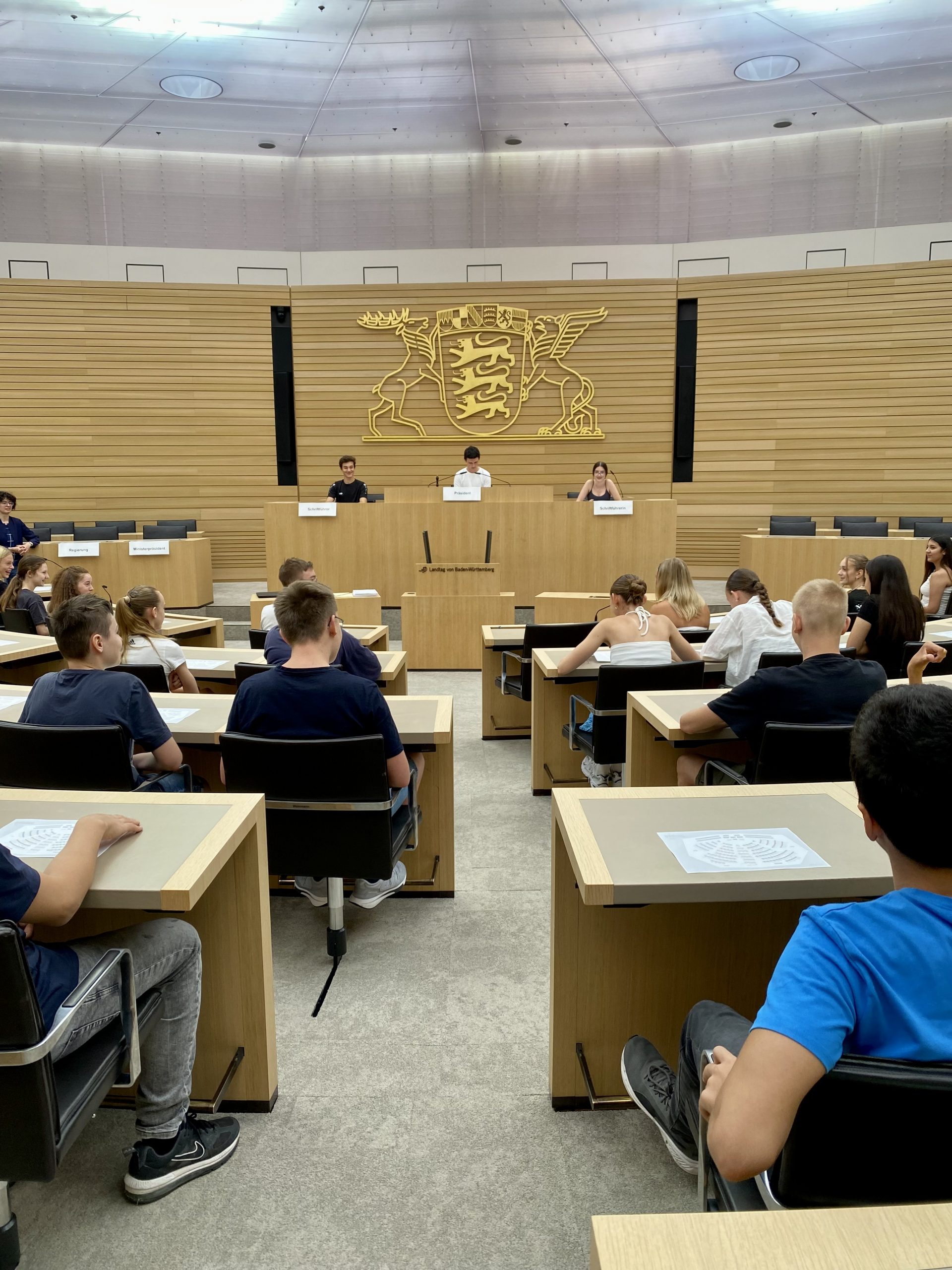 Gleich zwei Jahrgänge des Erich Kästner Gymnasiums besuchten in den letzten Schulwochen den Landtag in Stuttgart.