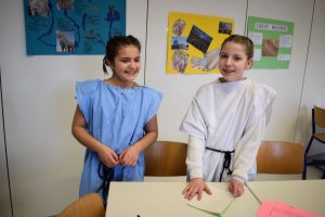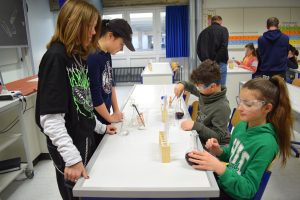 Von der chemischen Reaktion bis zu römischen Kostümen: Eine breite Palette an anschaulichen Einblicken in den Unterrichtsstoff bot das EKG am Erkundungstag. Die Schule erlebte einen Ansturm von Viertklässlern und ihren Eltern, aber auch ehemalige Schüler schauten vorbei. An diesem Nachmittag gab es für die Grundschüler viel zu erleben. Wer knackt die Pinata? Wer ist der Geschickteste beim Roller-Race? Wer hat die schönste römische Frisur? Das Fach Französisch lockte mit Crêpe, Physik mit selbstprogrammierten Lego-Robotern und Biologie mit einem Quiz. Die Schülersprecher und die Schulleiter waren die ganze Zeit damit beschäftigt, interessierte Kinder bzw. ihre Eltern durch das Schulhaus zu führen. Aber auch auf eigene Faust konnten die Gäste die gut ausgestatteten Fachräume und das breite Fächerangebot der Schule erkunden. Das Unterstufenorchester sorgte bei der Begrüßung für den richtigen Sound mit Melodien aus “Peer Gynt” und die Oberstufe bewirtete mit Kaffee und Kuchen.