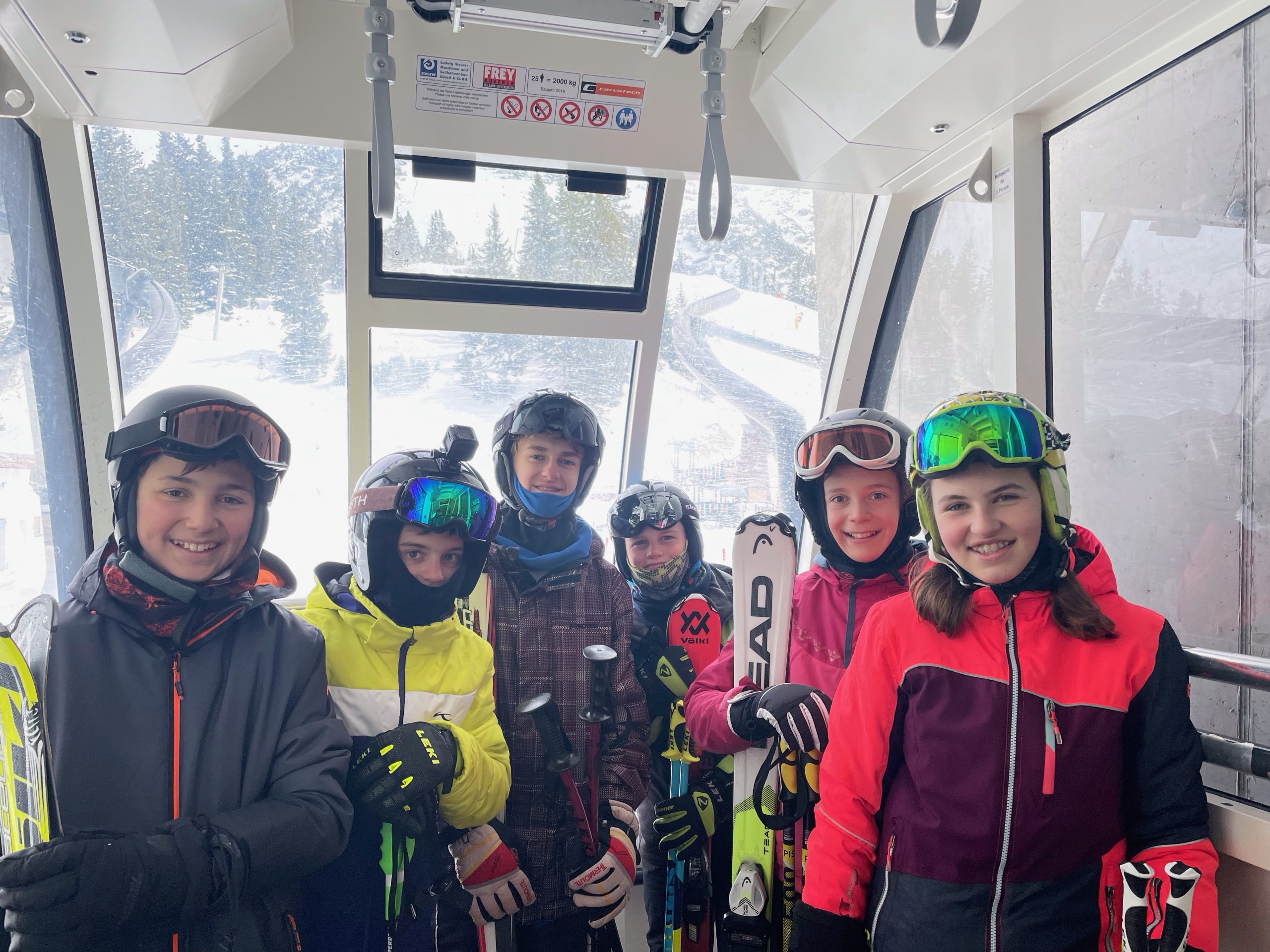 Die Klassen 7a und 7b waren zum Skischullandheim in Seefeld in Tirol. Möglich gemacht wurde das durch das große Engagement der sportlich begeisterten Lehrerinnen und Lehrer Valerie Blübaum, Sandra Wahl, Stefanie Auer, Christiane Schmid, Anna Bazle und Stefan Mayer. Die Schülerinnen und Schüler sind begeistert von der gemeinsamen Zeit in den Bergen, so wie Seraphina erzählt: „Ich fand das Skischullandheim sehr toll, da wir dort viel Zeit mit unseren Freunden verbringen konnten und viel Spaß hatten.“ „Das Skischullandheim hat die Gemeinschaft unserer Klasse und mit der Parallelklasse gestärkt“, hat Marlene festgestellt und Antonia ergänzt, dass  sie mehr zusammengewachsen sind und sich stärker angefreundet haben. „Wir waren mit sieben Mädchen auf einem Zimmer und ich dachte, dass das niemals funktionieren würde, aber wir haben uns gut verstanden.“ Natürlich stand das Skifahren im Mittelpunkt. „Das Besondere am Skischullandheim war, dass viele die tolle Möglichkeit bekommen haben, Skifahren zu lernen, diese Erfahrung hätten sie sonst nie im Leben gemacht. Ich mochte das Skischullandheim sehr, weil Skifahren eine große Leidenschaft von mir ist“, schwärmt Marlene. Es gab Gruppen für verschiedene Vorkenntnisse und die Lehrer motivierten die Jugendlichen vorwärtszukommen. „Beim Skifahren haben die Anfänger super schnell gelernt und manche durften sogar schon auf die große Piste“, berichten die beiden Julias und fanden auch das Liftfahrten super, weil sie dabei vieles über die anderen Schüler erfahren haben. Sogar das  Hinfallen war witzig, meint Vivienne. Leonard und Ilian waren begeistert von den hohen Schanzen auf der Piste, „weil man da fliegen lernen konnte.” Nicht nur Annalena ist beeindruckt von den Alpen: „Die Aussicht war sehr schön, vor allem die Sicht auf die Berge.” Auch Schnee und Wetter haben gepasst, „der Schnee war immer befahrbar, dafür, dass es Ende März war. Und das Wetter hat außer dem Schneesturm am ersten Tag auch mitgemacht. Der zweite Tag war dann am schönsten, weil die Sonne geschienen hat“, berichtet Merlene. Auch beim Abendprogramm sorgten die Lehrer für  gute Stimmung. „Das Beste für mich waren die Abende! Das Abendprogramm war sehr unterhaltsam und witzig“, da ist sich Ileyna mit vielen Mitschülerinnen und Mitschülern einig. „Es gab immer eine Gruppe, die etwas für den Abend vorbereitet hat, also immer ein Spiel ausdenken, z.B. Take Me Out“, das ist Seraphina in Erinnerung geblieben. Auch die „riesigen Zimmer“ waren einladend. „In der freien Zeit konnte man sich mit den Zimmerbewohnern richtig schön unterhalten, das hat die Klassen noch enger zusammengeschweißt“, hat Eva erlebt. „Wir haben uns öfters mit allen Leuten in einem Raum getroffen, einfach nur erzählt und stundenlang gelacht.“ Und Julia erzählt: „Einmal haben wir uns gegenseitig geschminkt und Ileyna hat den Jungs neue Frisuren verpasst“. Ileyna ergänzt: „Als die Lehrerin an der Tür geklopft hat, haben die Jungs Panik bekommen und haben sich unter den Betten und in den Schränken versteckt! Die Lehrerin hat sie aber trotzdem erwischt, hat aber nicht geschimpft.“ Beide Klassen schwärmen von der verbindenden Kraft des Skischullandheims, was Ileyna so beschreibt: „Das Allerbeste für mich war, dass ich viele neue Freunde kennengelernt habe. Ich habe gedacht, dass ich keinen Kontakt mehr zu ihnen haben werde, aber ganz im Gegenteil! Ich bin immer noch mit ihnen befreundet und wir treffen uns auch schon außerhalb der Schule.“  Seraphinas Fazit ist eindeutig positiv: „Das Schullandheim wird mir in Erinnerung bleiben und ich kann es nur weiterempfehlen.“ Oder mit Ileynas Worten: „Also, wenn ihr in ein Schullandheim geht, habt ihr einfach nur Glück!“