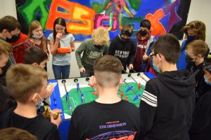 Es war ein spannendes Finale am Tischkicker im Aufenthaltsraum. Am Kicker gab es ein Duell von Nico und Manuel aus Klasse 6a gegen Arda und Nevio aus der 6c. Außenherum drängten sich viele Schüler*innen, um die vier Spieler anzufeuern. Dazu heizte die SMV mit Musik wie „Final Countdown“ ein. Daraufhin jubelten Nico und Manuel, die mit einem 10 zu 3 als Sieger aus dem ersten EKG Tischkickerturnier hervorgingen.