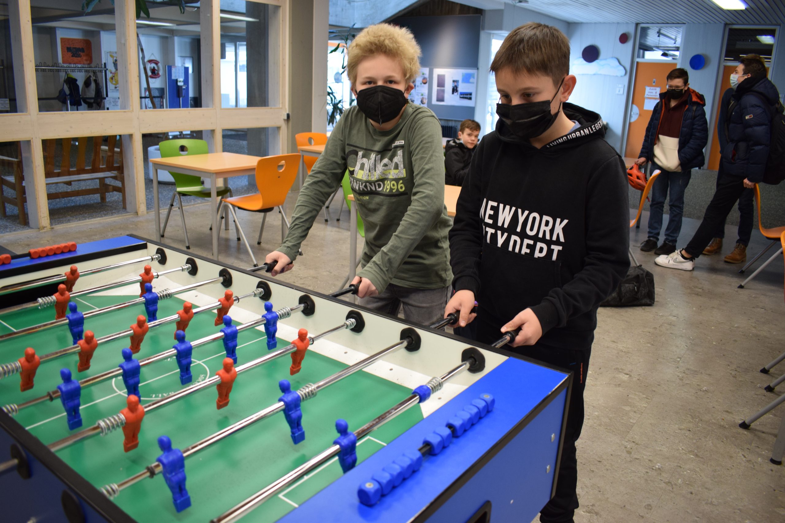 Es war ein spannendes Finale am Tischkicker im Aufenthaltsraum. Am Kicker gab es ein Duell von Nico und Manuel aus Klasse 6a gegen Arda und Nevio aus der 6c. Außenherum drängten sich viele Schüler*innen, um die vier Spieler anzufeuern. Dazu heizte die SMV mit Musik wie „Final Countdown“ ein. Daraufhin jubelten Nico und Manuel, die mit einem 10 zu 3 als Sieger aus dem ersten EKG Tischkickerturnier hervorgingen.