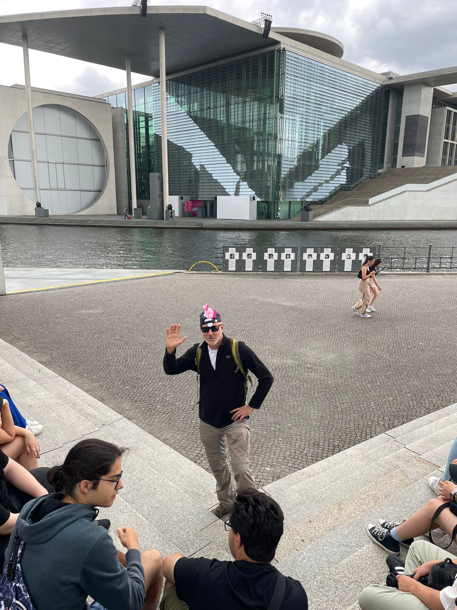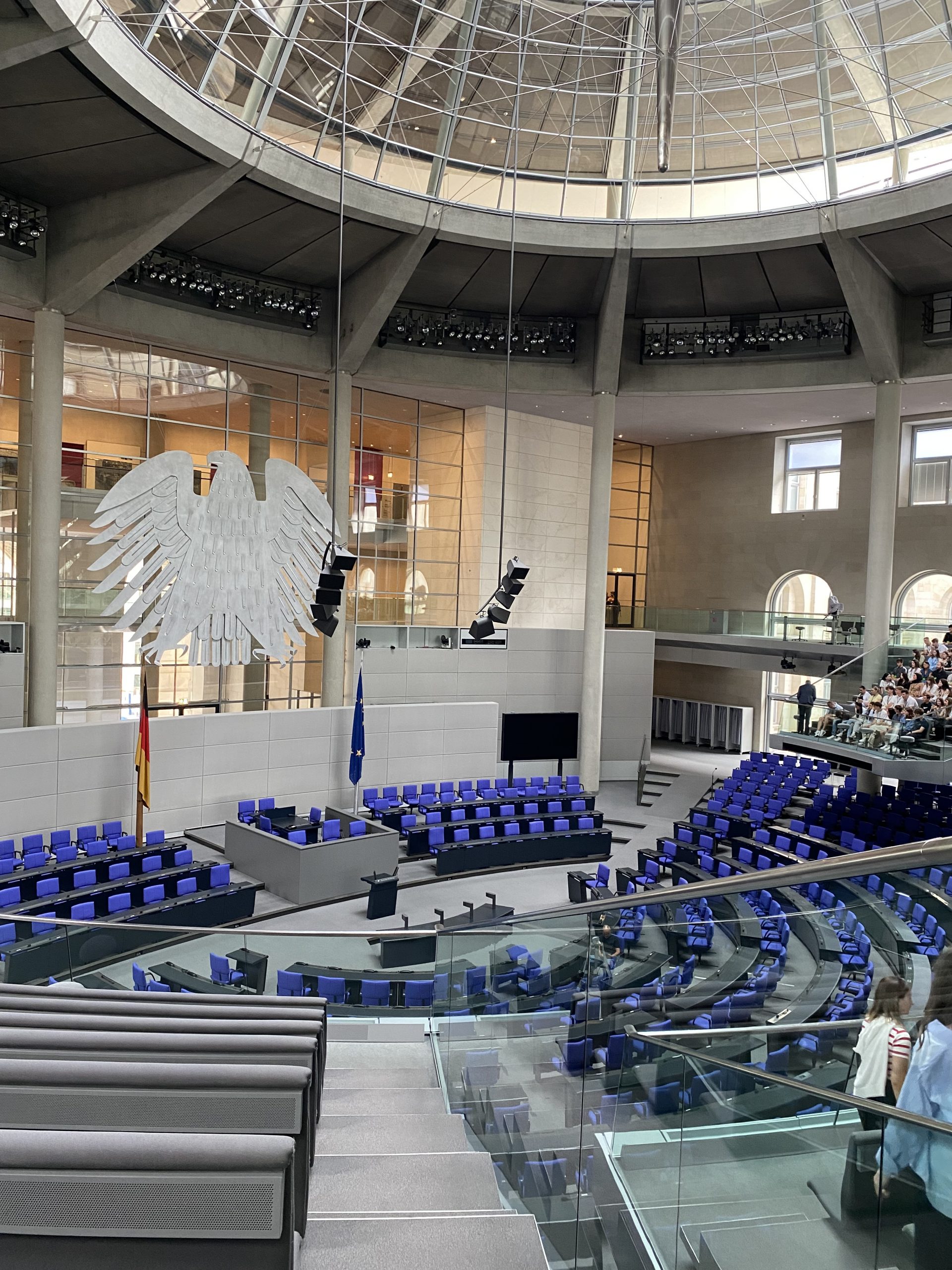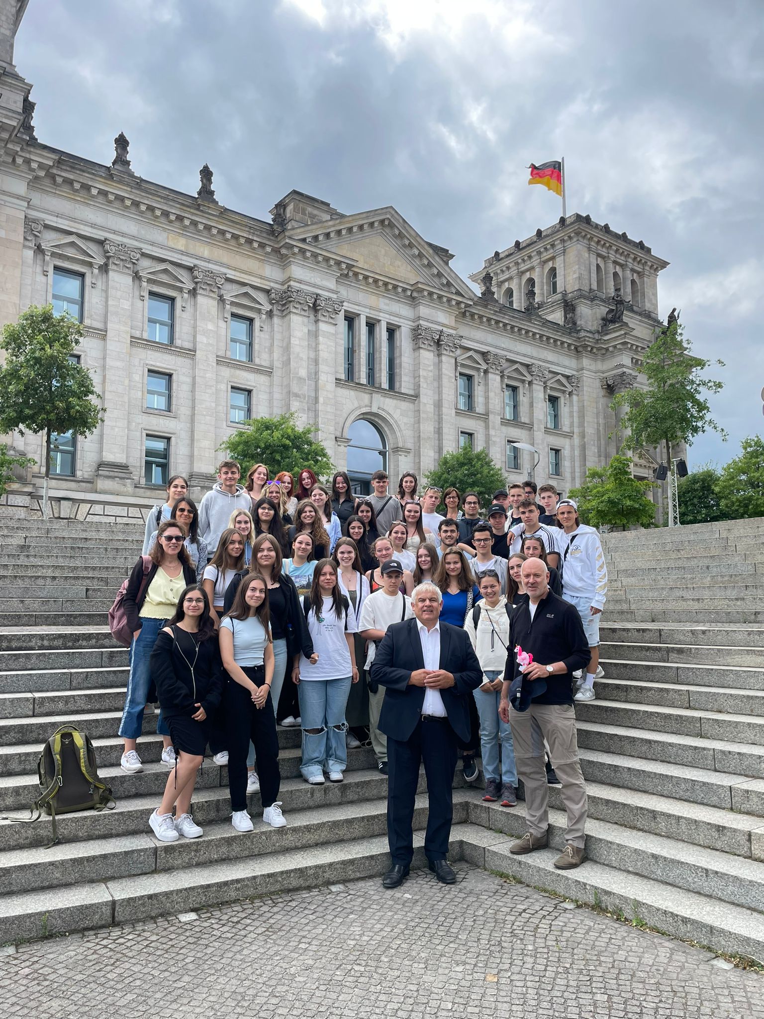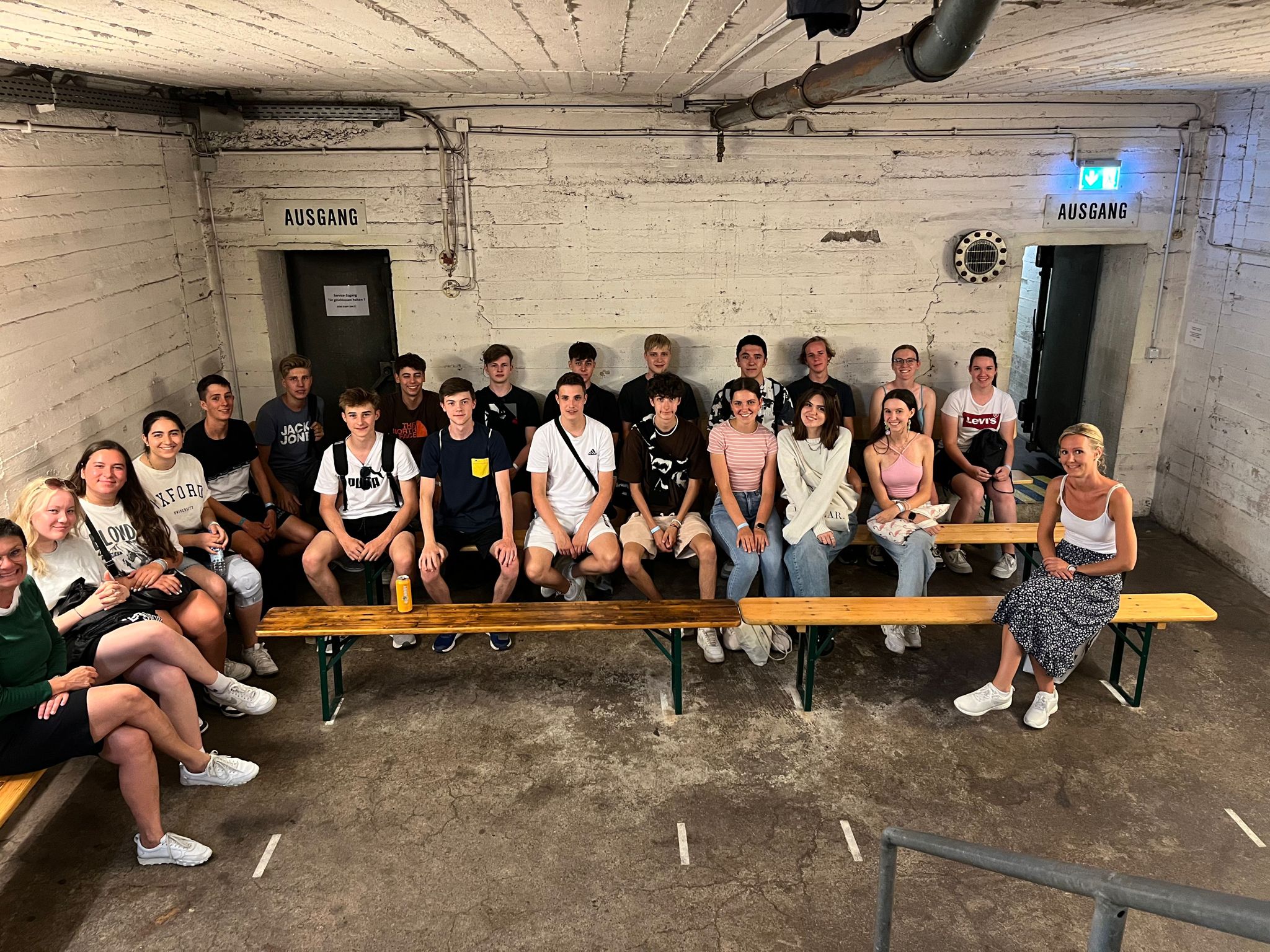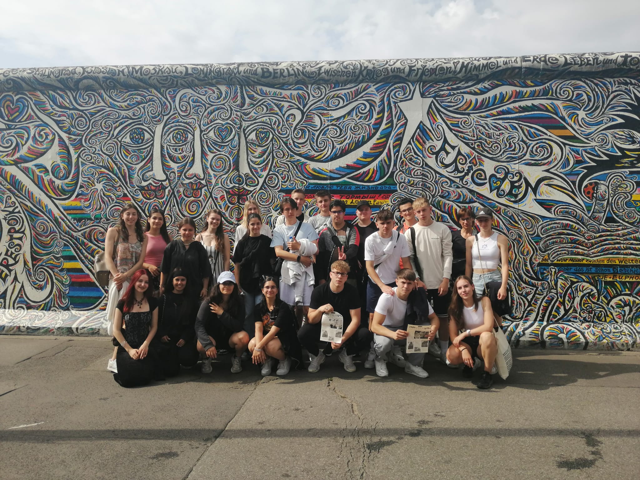 Die Studienfahrt der Stufe 1 nach Berlin begann am Montag, dem 17.07., und endete am darauffolgenden Freitag. Nach einer langen Busfahrt machten wir einen mehrstündigen Spaziergang durch Berlin, bei dem wir unter anderem den Tränenpalast, den Gendarmenmarkt und das berühmte Brandenburger Tor besuchten. Das Eindrucksvollste dieses Rundgangs war das Dokumentationszentrum „Topographie des Terrors“, das sich mit der Entwicklung des Terrors im nationalsozialistischen Deutschland befasst. Dabei hatte man die Möglichkeit, neben den theoretischen Fakten auch persönliche Geschichten von Opfern zu erfahren. Am darauffolgenden Tag suchten wir das Holocaust-Mahnmal auf, das an die sechs Millionen jüdischen Toten erinnert. Die Informationsstätte gibt Auskunft über die Leidensgeschichte vieler jüdischer Familien und legt beispielsweise persönliche Briefe, unter anderem Leidens- und Abschiedsbriefe der Opfer, dar. Es war sehr bewegend, die Gedanken und Ängste der Betroffenen in den Briefen herauszulesen und zu versuchen, sich in diese Zeit hineinzuversetzen. Später am Nachmittag statteten wir dem ehemaligen Stasi-Gefängnis, der Gedenkstätte in Hohenschönhausen einen Besuch ab. Dort bekamen wir eine Führung durch die Innenräume der Untersuchungshaftanstalt und erfuhren, wie der Alltag der politischen Gefangenen dort ausgesehen hatte. Die Führung gab einen sehr genauen Einblick in die damaligen Umstände, außerdem welche physischen und psychischen Druckmittel verwendet wurden, um die Gefangenen zum Reden zu bringen. Am darauffolgenden Morgen ging es für uns auf einen Spaziergang entlang der East- Side-Gallery. Dort bewunderten wir die Künstlerbemalung auf den Überresten der Berliner Mauer, die das Reststück des Mauerwerks in ein buntes Mahnmal verwandelte. Eine Führung entlang einem Teil der ehemaligen Berliner Mauer gab Auskunft über die Zeit des Mauerbaus und das Leben der Menschen nahe der Mauer, die gegen ihren Willen von ihren Familienangehörigen auf der anderen Seite getrennt wurden. Es war erschreckend zu hören, wie viele Menschen beim Versuch über die Mauer zu klettern, umgekommen sind. Unser letzter richtiger Tag in Berlin begann mit einem interessanten Gespräch mit dem Politiker Hermann Färber, einem direkt gewählten Abgeordneten der CDU für den Wahlkreis Göppingen. Er erklärte uns viel über seine Arbeit und seine zuständigen Bereiche Landwirtschaft und Ernährung, woraufhin wir ihm Fragen stellen und mit ihm diskutieren konnten. Das Highlight der Berlin-Reise war der Besuch des Bundestages. Dort erfuhren wir viel über den Reichstag und seine Vergangenheit sowie über den Bau der Kuppel, die wir später noch besichtigen konnten. Nach einem letzten Abend in Berlin fuhren wir mit schönen Erinnerungen, aber auch schweren Beinen und Schlafmangel am Freitag wieder nach Hause.