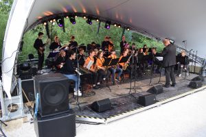 “Good feelings” vermittelte die Bigband des EKG bei dem “Filsterrassen Open Air” -Festival der Stadt Eislingen. Das Gemeinschaftskonzert der Eislinger Musikvereine und Chöre eröffneten die jungen Musiker mit beschwingtem Blues und Soul. Unter der Leitung von Marin Gradner war in der Band wieder die ganze Palette an Instrumenten vertreten. Stimmungsvoll in Farblicht getaucht brachten die Jugendlichen das Publikum auf der Terrasse an der Fils in sommerliche Stimmung und trotzen den grauen Wolken. Die Zuhörer waren in Scharen gekommen. Sie genossen die ungezwungene Atmospäre und erfreuten sich an der live dargebotenen Musik. Die Schülerinnen und Schüler – neu eingekleidet mit EKG-Emblem – waren glücklich darüber, nicht mehr nur in der Schule spielen zu dürfen, sondern wieder Publikum mitreißen zu können. Die Eislinger bedankten sich für die Spielfreude mit herzlichem Applaus.