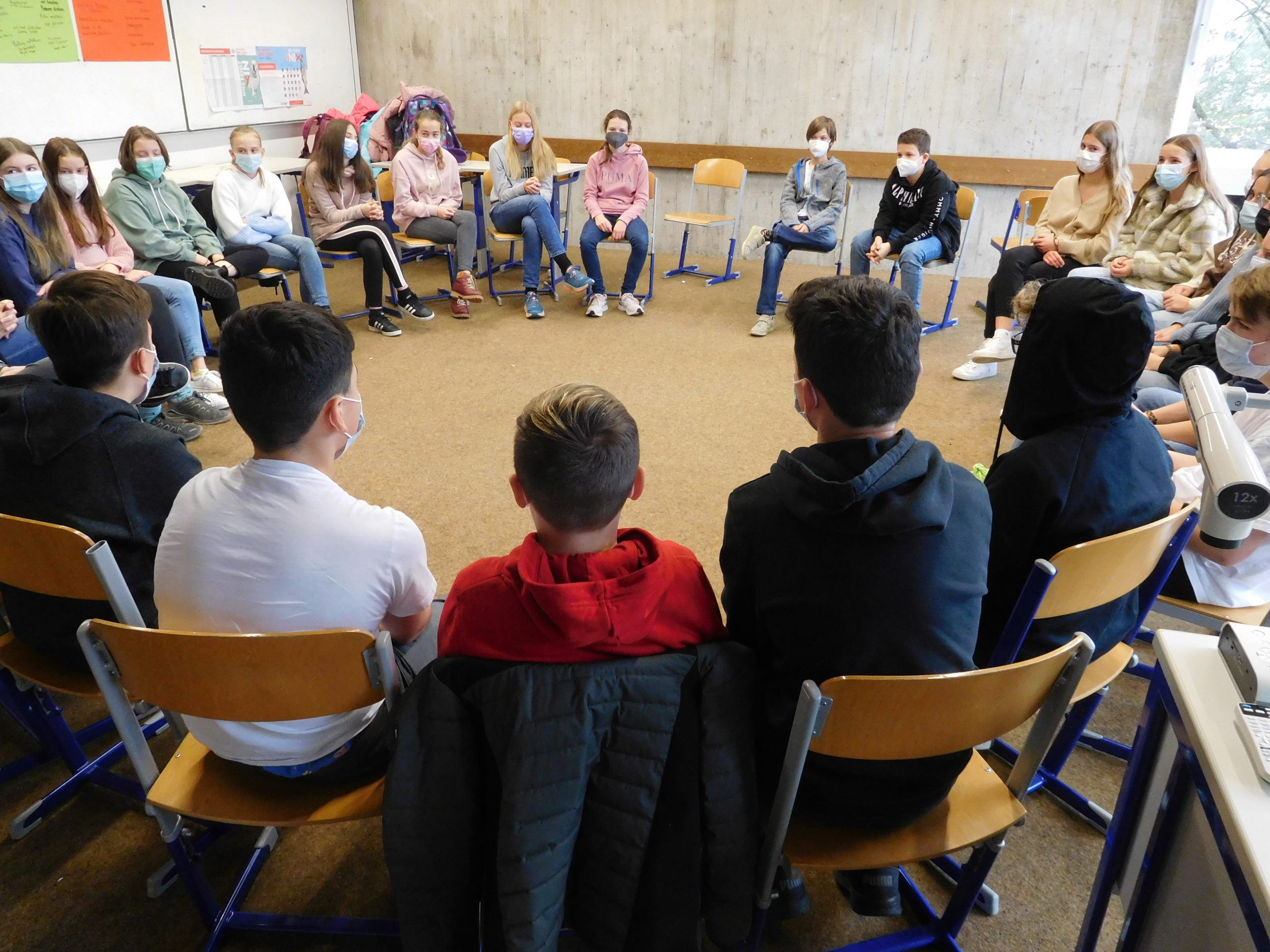 “WIR stärken uns”, unter diesem Motto standen die letzten beiden Schulstunden am 17. November. Jede Klasse hatte ihr eigenes Programm, um noch besser zusammenzuwachsen. Da ging es laut und fröhlich, bunt und munter zu im ganzen Schulhaus, da wurde Theater gespielt und mit Luftballons jongliert, da wurden zusammen Aufgaben gelöst und beim blind date Gemeinsamkeiten gefunden. Verschiedenste Spiele und Aktionen trainierten die Interaktion und stärkten die Sensibilität füreinander.