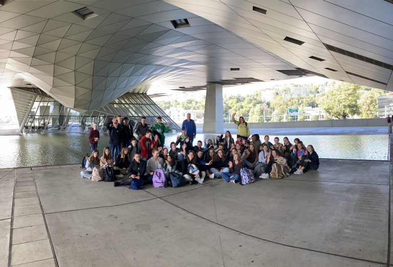 Vom 13. bis zum 21.Oktober 2022 fuhren wir mit 23 Schülerinnen und Schülern der 8.Klassen und den Französischlehrern Stefanie Doosry und Martin Gradner in unsere Partnerstadt im französischen Jura. In Oyonnax wurden wir in Familien sehr gastfreundlich aufgenommen und teilten den französischen Alltag und das Schulleben mit unseren Gastgebern. Durch dieses „Sprachbad“ wurden die Sprachkenntnisse erweitert und die kulturellen Unterschiede im Bildungssystem direkt erfahrbar. Neben dem Schulbesuch standen auch mehrere außerschulische Unternehmungen auf dem Programm. Gleich am ersten Morgen wurden wir im Rathaus herzlich begrüßt und bewirtet und abends durften wir beim gemeinsamen Stadionbesuch mit den Franzosen unter lautstarkem Jubel den Sieg ihrer Rugbymannschaft, der „Oyomen“, feiern. Die dunkle Seite der deutsch-französischen Vergangenheit während des Zweiten Weltkriegs wurde im „Museum des Widerstands“ in Nantua für die Schüler beider Nationen direkt erfahrbar, als sie sich bei einem Planspiel gemeinsam in der Rolle französischer Widerstandskämpfer vor den deutschen Besatzern verstecken mussten. Wie jedes Mal führte uns der große Ausflug nach Lyon. Neben einem Überblick über die Stadt vom Hügel La Fourvière aus und einer anschließenden Stadtführung, bei der wir durch die geheimen Durchgänge der Häuser bis zum Fluss unten im alten Lyon liefen, gab es einen Museumsbesuch im neuen „Musée des Confluences“, welches schon durch seine moderne Architektur und Konzeption fasziniert.